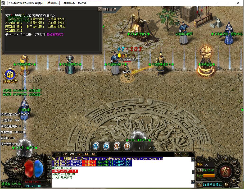 全民火龙单职业微变版本,纯散人服不花钱也可终极,一切靠打无合成,散人打金地图多怪物刷新速度快,装备货币保值,每日人品大爆发轻松300+收入。每天稳定四区开放(10:30 14:30 18:30 22:30),每个地图终极福利BOSS每晚22:01刷新,首区攻沙奖励RMB 588无封顶。市场最强封挂系统24小时接受举报,提醒设置二级密码防扫号。适度游戏益脑,拒绝盗版,享受健康生活。