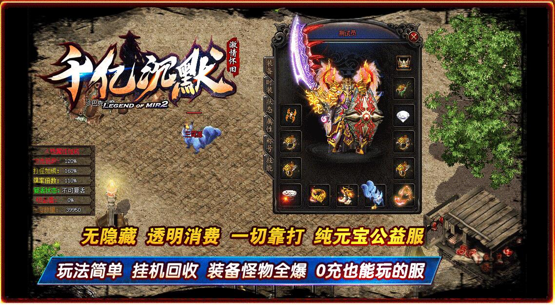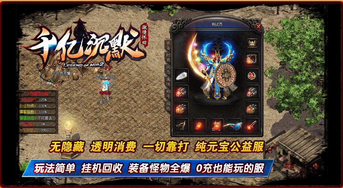 【无隐藏透明消费】一切靠打,纯元宝公益服玩法简单挂机回收装备怪物全爆0充也能玩的服