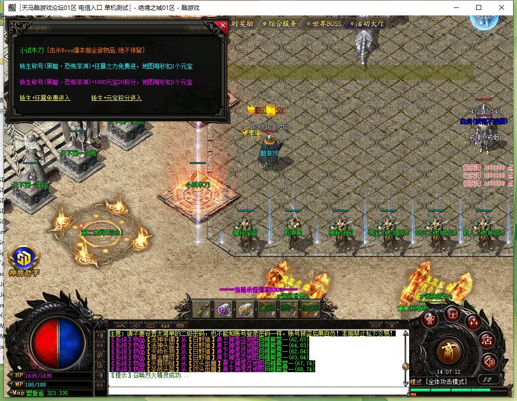 6. 福利BOSS每2个小时刷新一次,每个刷怪地图都有一只,打到就是赚到!