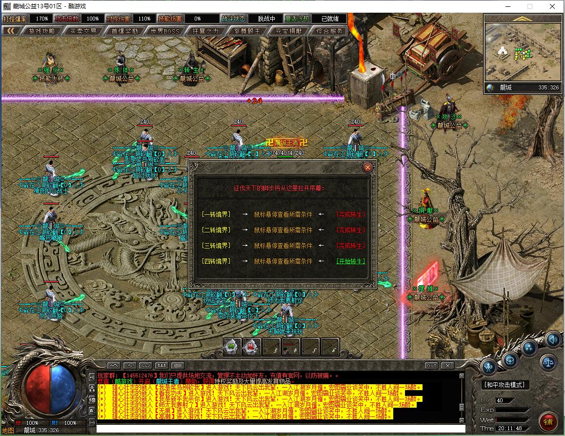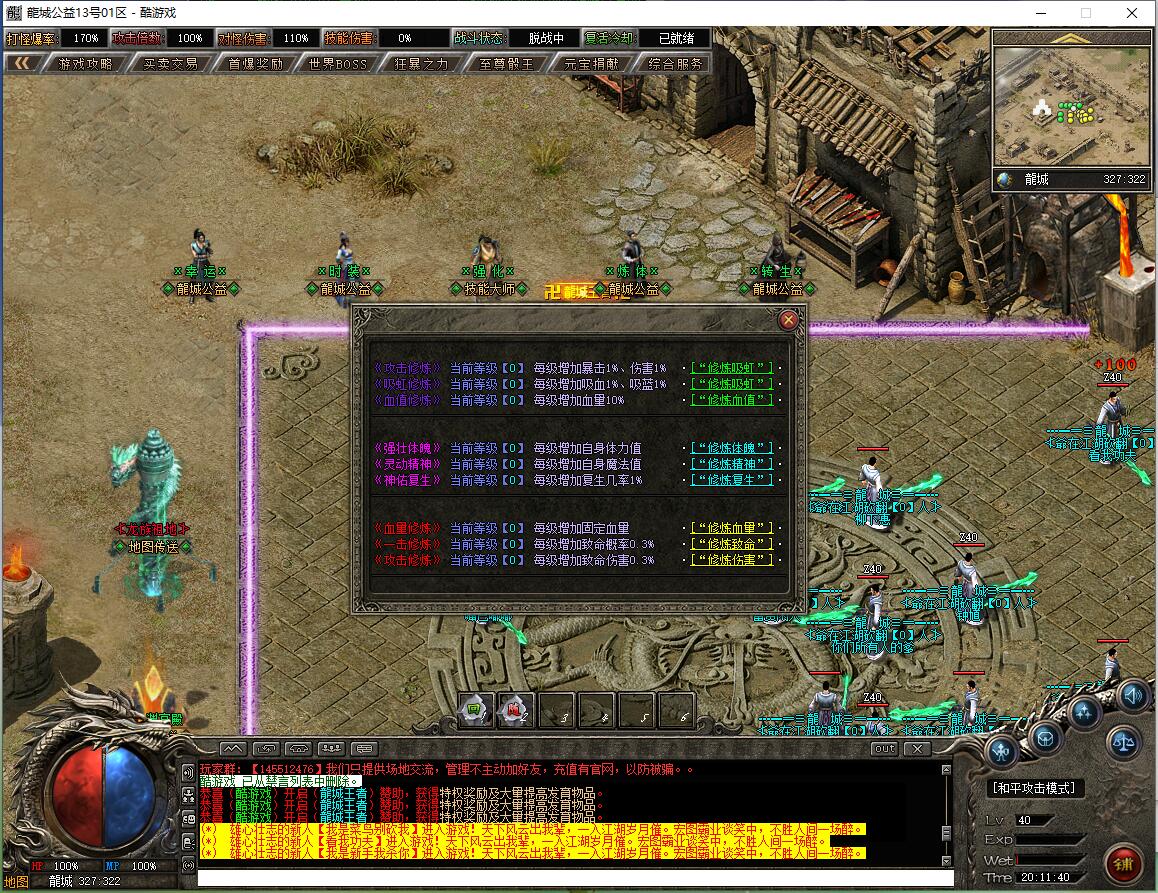 沉默降临是一款情怀单职业传奇游戏,定位公益追梦版,为长期服,装备保值,拒绝快餐模式。特色包含唯一赞助3600沉默币狂暴之力,300沉默币普通沙捐,2000沉默币神豪沙捐,3000沉默币神魔保底(保底8800沉默币)。账号档次分两档:落地全满号(狂暴3+沙捐50+赞助36+神魔88,共177元)、大哥全满号(含额外祈福20次,共353元),无隐藏消费与比例。宝宝成长:0级战兽、50级高级战兽、55级超级战兽、58级终极战兽(群攻)。开荒路线:落地矿区打白怪(狂风项链戒指)→全图圣兽→粉色装备(爪子吸血头)→渡劫选左边吸血命格→合特殊优先盾→开黄(紫色追梦效率低不建议)→开红(可卡怪或堆属性)→开人行。重要提示:十步一杀在56级震天宫三层花费888万金币获得,入口坐标97.17,称号卷轴通过活动或蓝色怪(圣兽)、恭喜发财爆出。郑重承诺爆率全开、公平公正,听取玩家意见重金酬谢,致力于良好游戏体验。沉默币充值比例1:100。