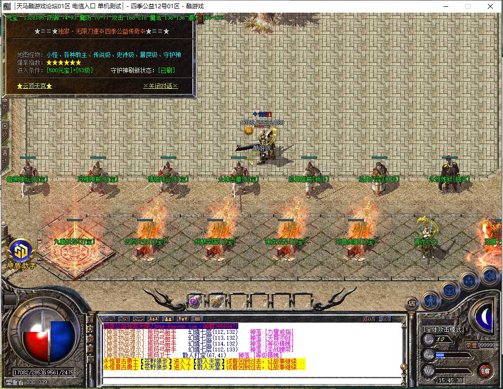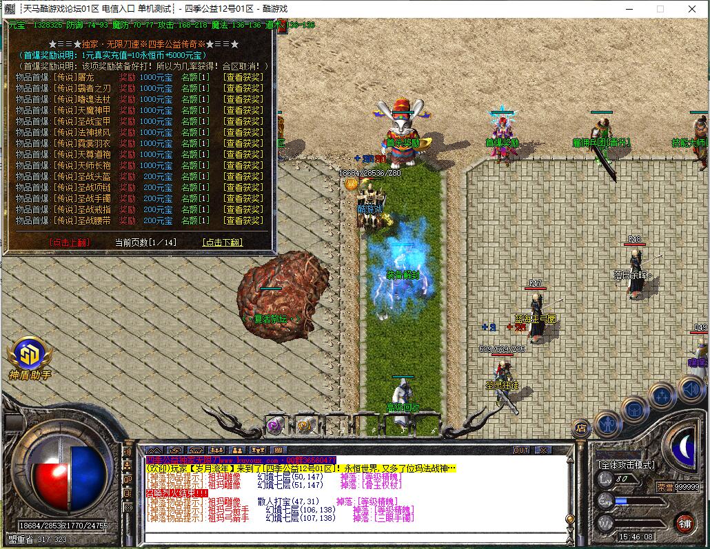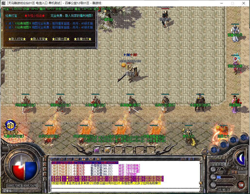 全民火龙单职业微变版本,纯散人服不花钱也可终极,一切靠打无合成,散人打金地图多怪物刷新速度快,装备货币保值,每日人品大爆发轻松300+收入。每天稳定四区开放(10:30 14:30 18:30 22:30),每个地图终极福利BOSS每晚22:01刷新,首区攻沙奖励RMB 588无封顶。市场最强封挂系统24小时接受举报,提醒设置二级密码防扫号。适度游戏益脑,拒绝盗版,享受健康生活。