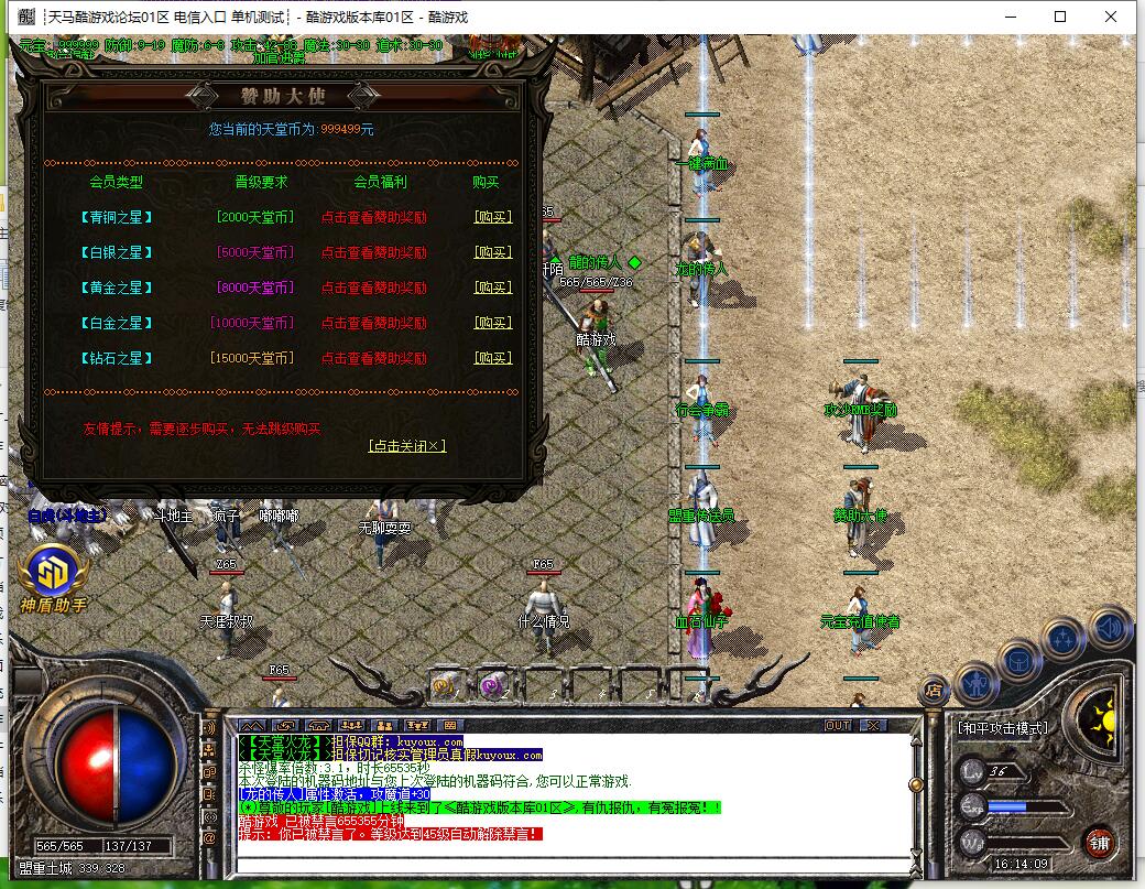 元宝1:1000 天堂币1:100 网银多送100% 系统多充多送(散人好混)