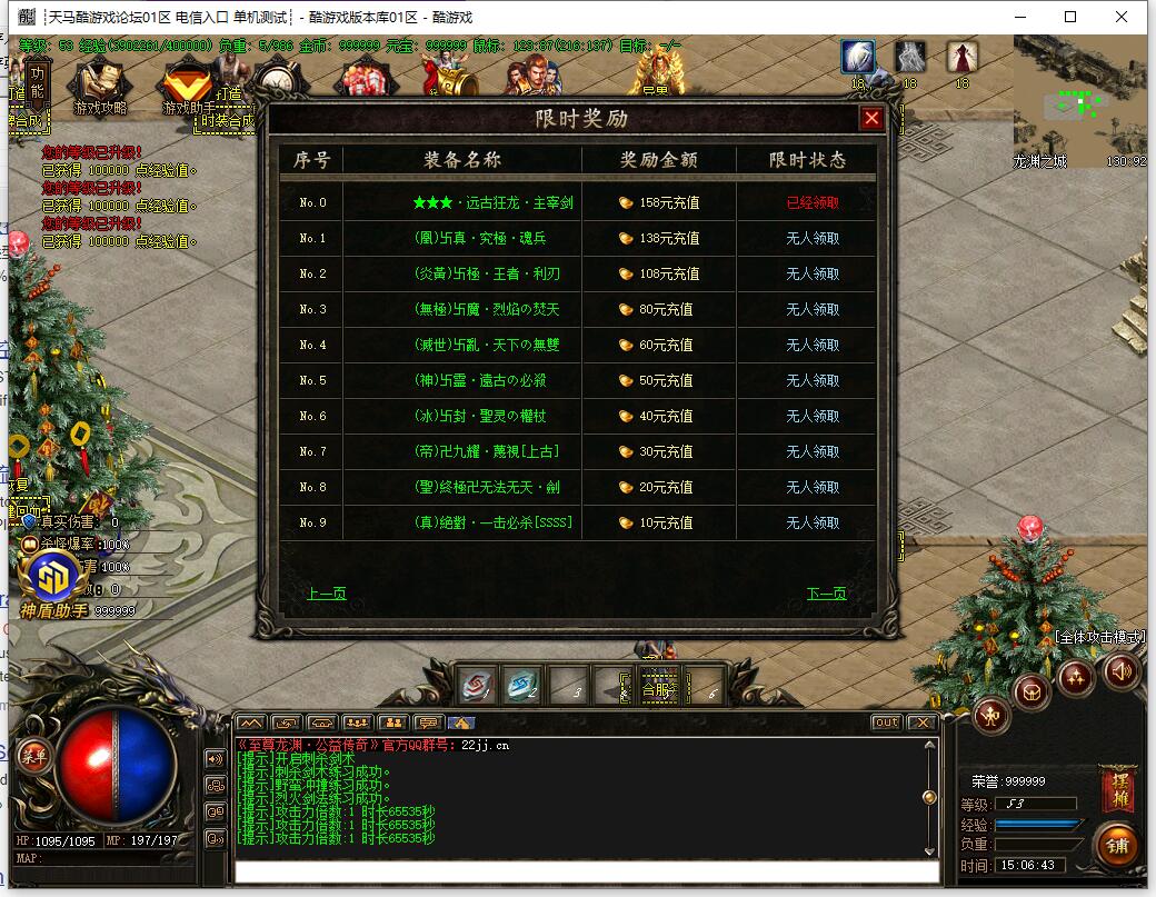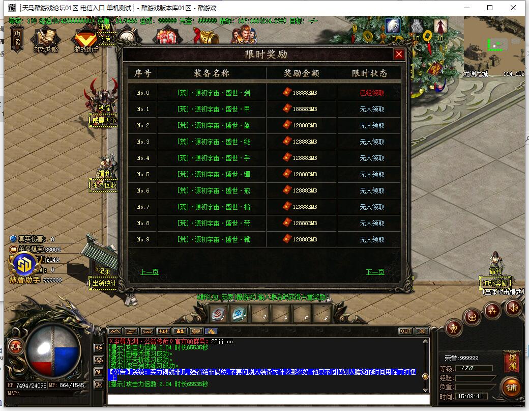 全民火龙单职业微变版本,纯散人服不花钱也可终极,一切靠打无合成,散人打金地图多怪物刷新速度快,装备货币保值,每日人品大爆发轻松300+收入。每天稳定四区开放(10:30 14:30 18:30 22:30),每个地图终极福利BOSS每晚22:01刷新,首区攻沙奖励RMB 588无封顶。市场最强封挂系统24小时接受举报,提醒设置二级密码防扫号。适度游戏益脑,拒绝盗版,享受健康生活。