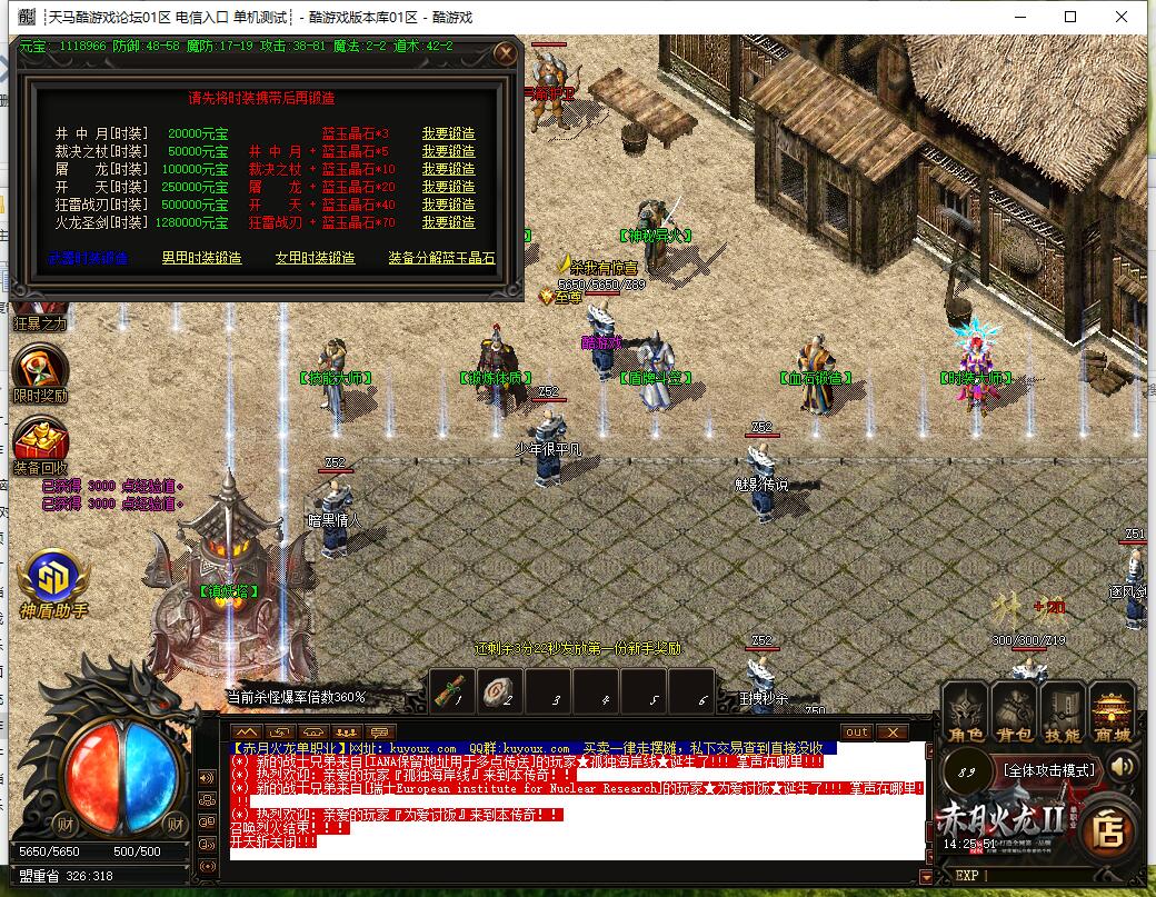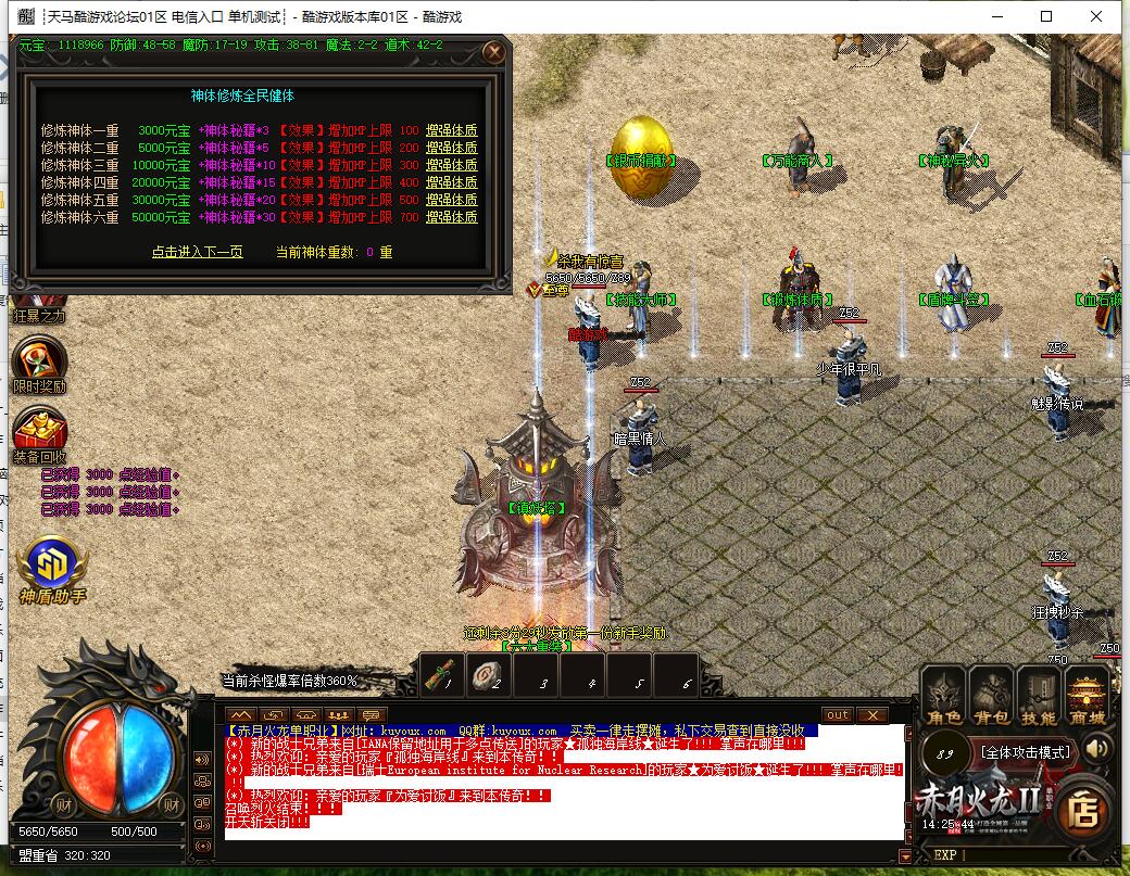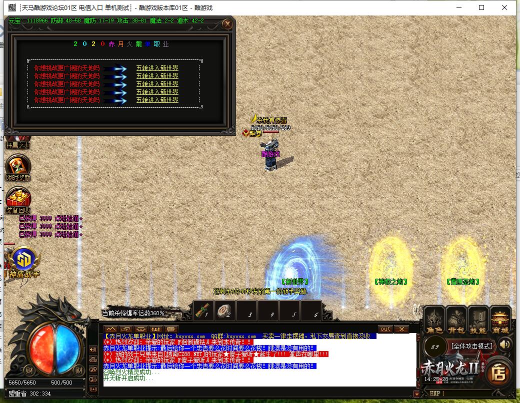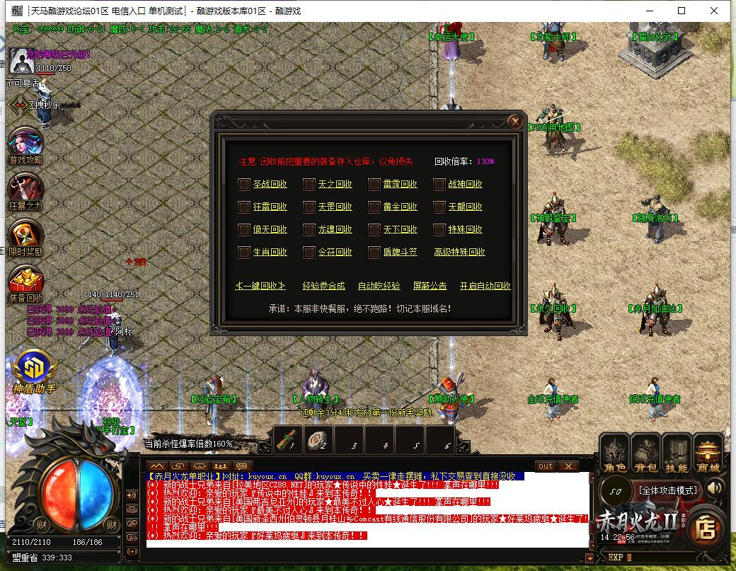 3. 所有元宝靠回收装备获得,优先提升血石、体质、转生