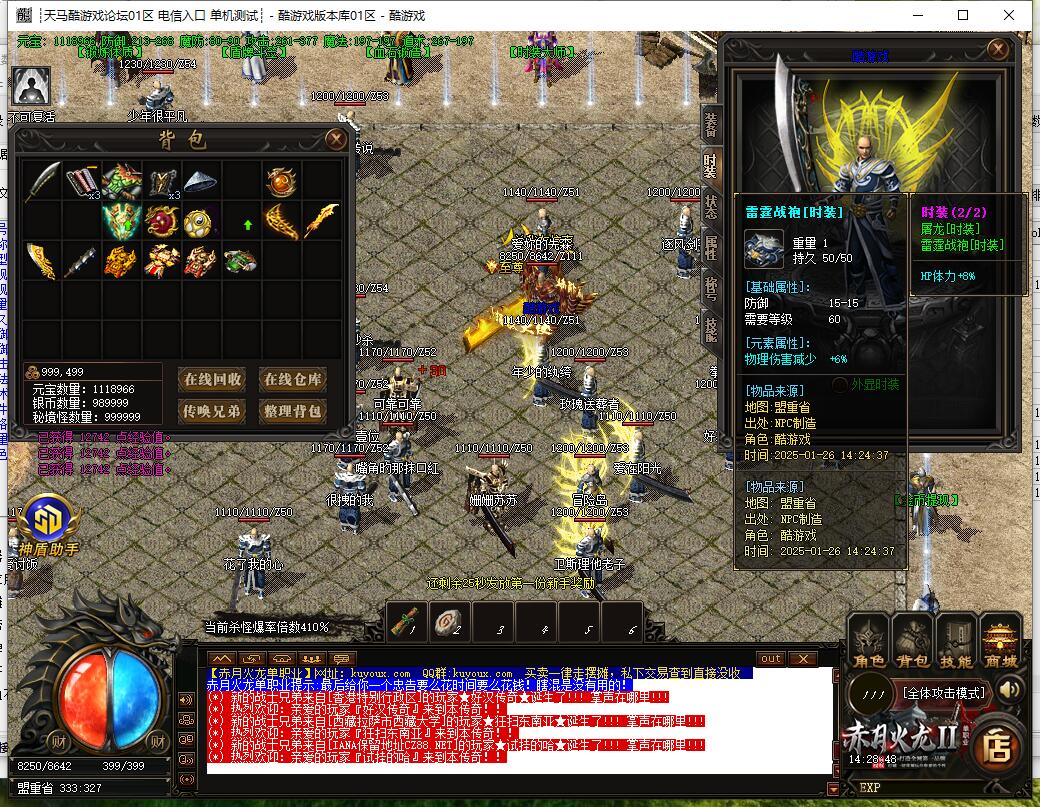 3. 装备全部靠怪物产出,多打怪是王道,抢BOSS刷秘境(秘境是本服装备最高产出地)