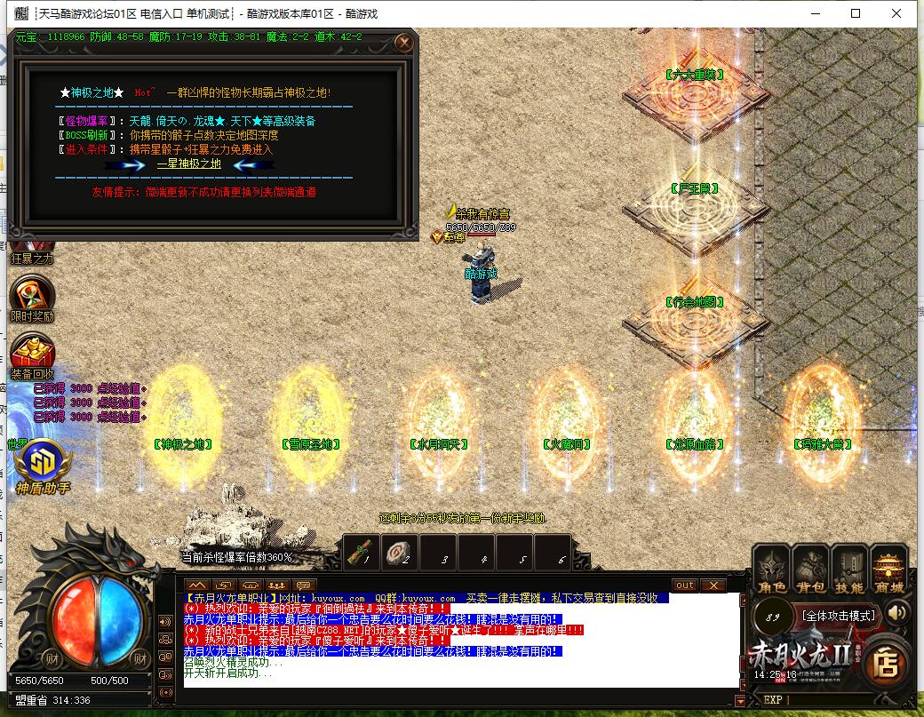 2. 土城地图按顺序打怪:新手打宝→散人天堂→战神之路→玛雅等