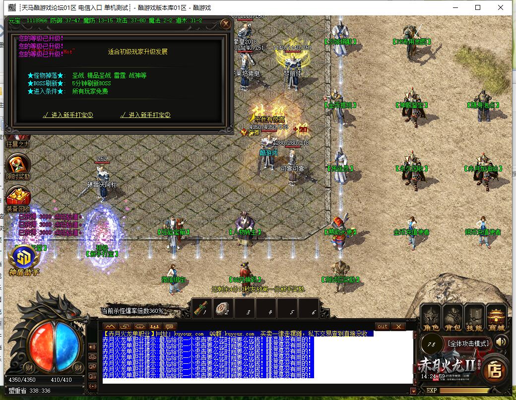 开通捐献称号获得刀刀切割288,打怪效率超快,各种装备随机获得鉴定属性