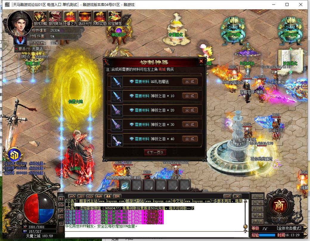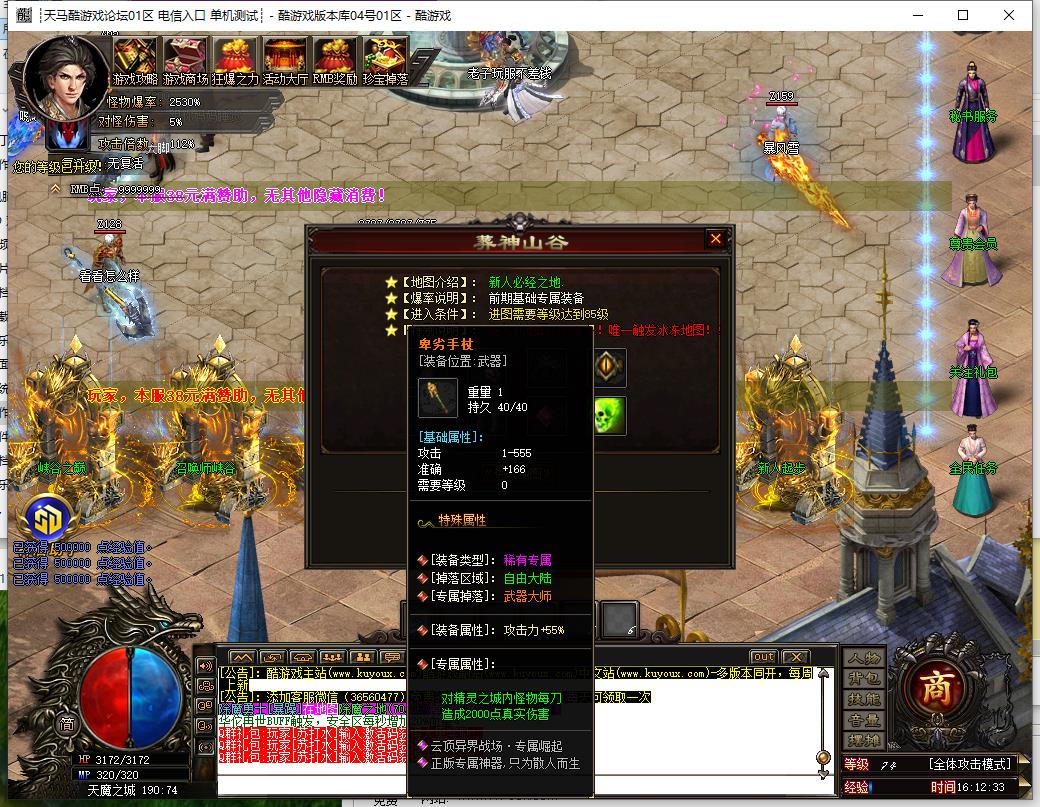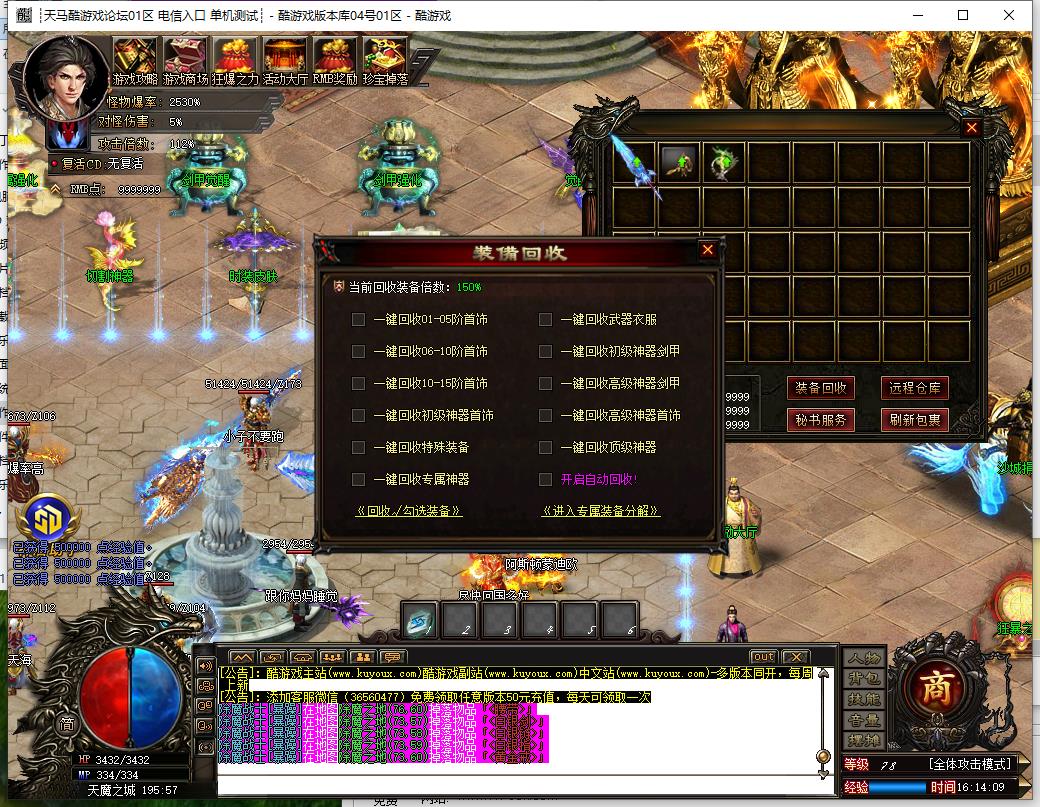 元宝和特殊材料只能游戏里产出,元宝不要乱用,只能靠打,后期晋升需要大量元宝,建议双开。本服采用全新等级和转生模式,散人玩家也可全满,绝不会为了赚钱而卡玩家的等级和转生。充值与非充值玩家同等对待,全部可以自给自足。一切靠打。