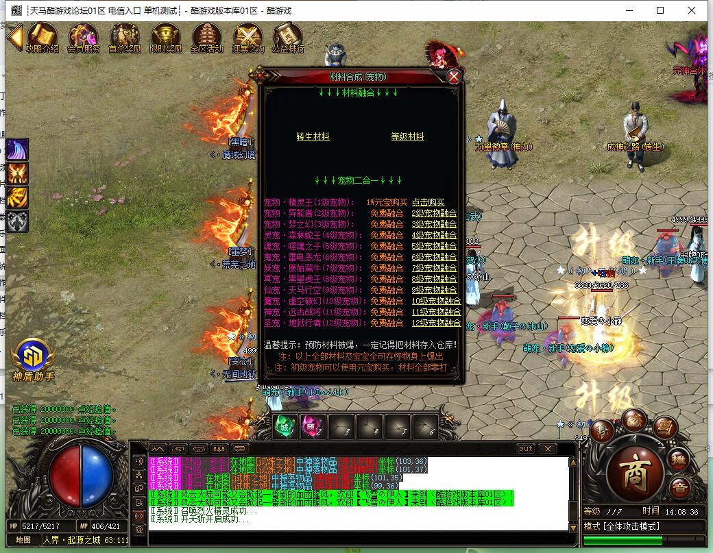 第一大城所有低级地图新增刷新大量大型BOSS、加强前中期宝宝,宝宝可合成十分给力!