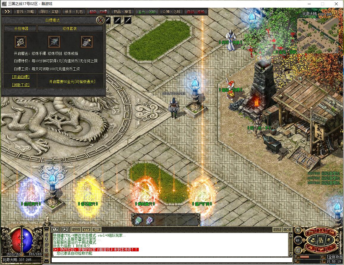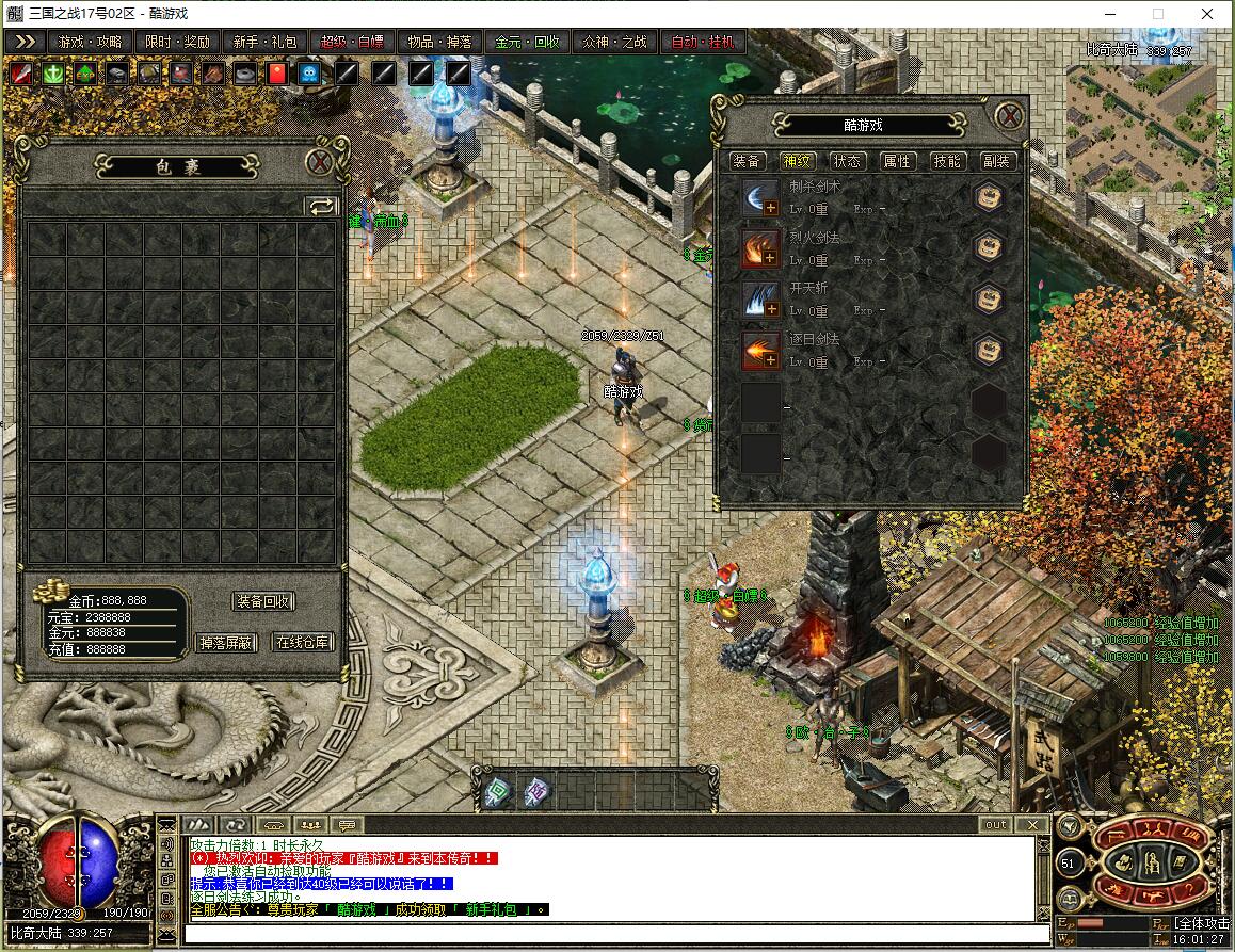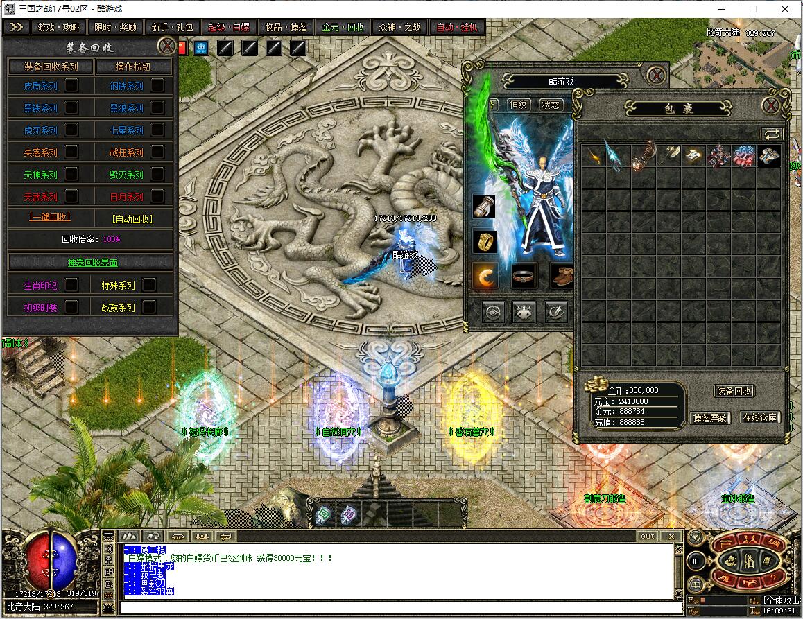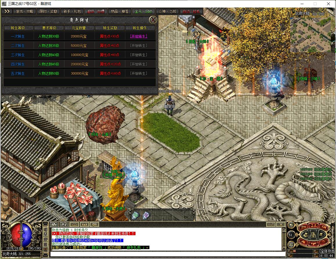 传奇游戏最新版本更新:新增智能挂机系统(入口位于综合服务内),优化所有怪物爆率(专属与材料爆率大幅提升),新增三个不爆物品,同步上线手写攻略(建议配合查询系统游玩,游戏难度适中)。增加元宝获取途径(杀怪即可获得元宝,适配后期高消耗需求),新增两个背包神器,调整金币获取规则(不同赞助等级对应不同获取量),金币回收倍率与赞助等级挂钩。修复3个剧情地图因不刷怪导致的中断问题,解决强化框不显示无法强化的故障,优化杀怪点变量及称号领取条件(一晚上可领完)。整理土城NPC布局(删除无用NPC,界面更整洁),新增GM可控真假爆率系统,优化人物初始攻速(非无限刀)。完成多处剧情地图问题修复与优化:赤沙龙城材料调整;剧情二四个NPC货币消耗、材料及概率优化(适配周服节奏);剧情三老者/尊者材料数量与成功率优化、老马猴/卖酒老头/定海神针合成修改、震天凯/穿针引线合成问题修复;云顶天宫进图条件调整,难度适当降低。