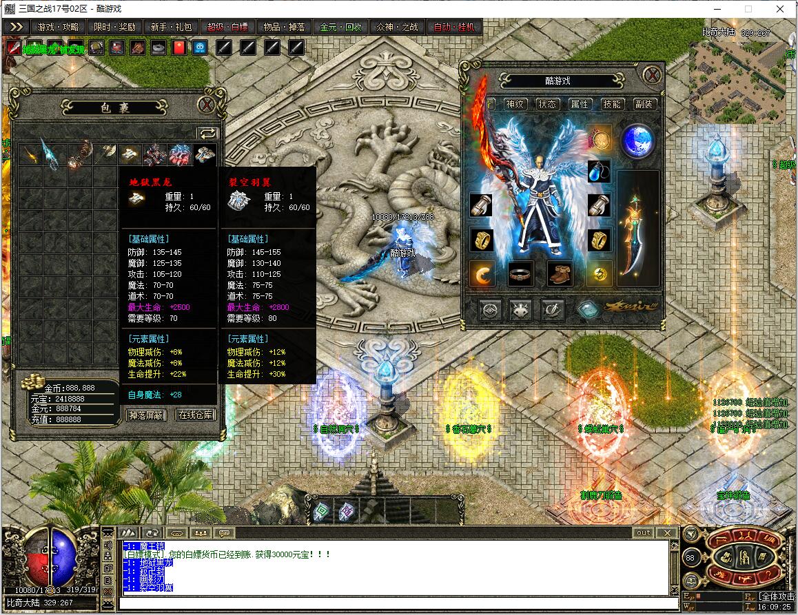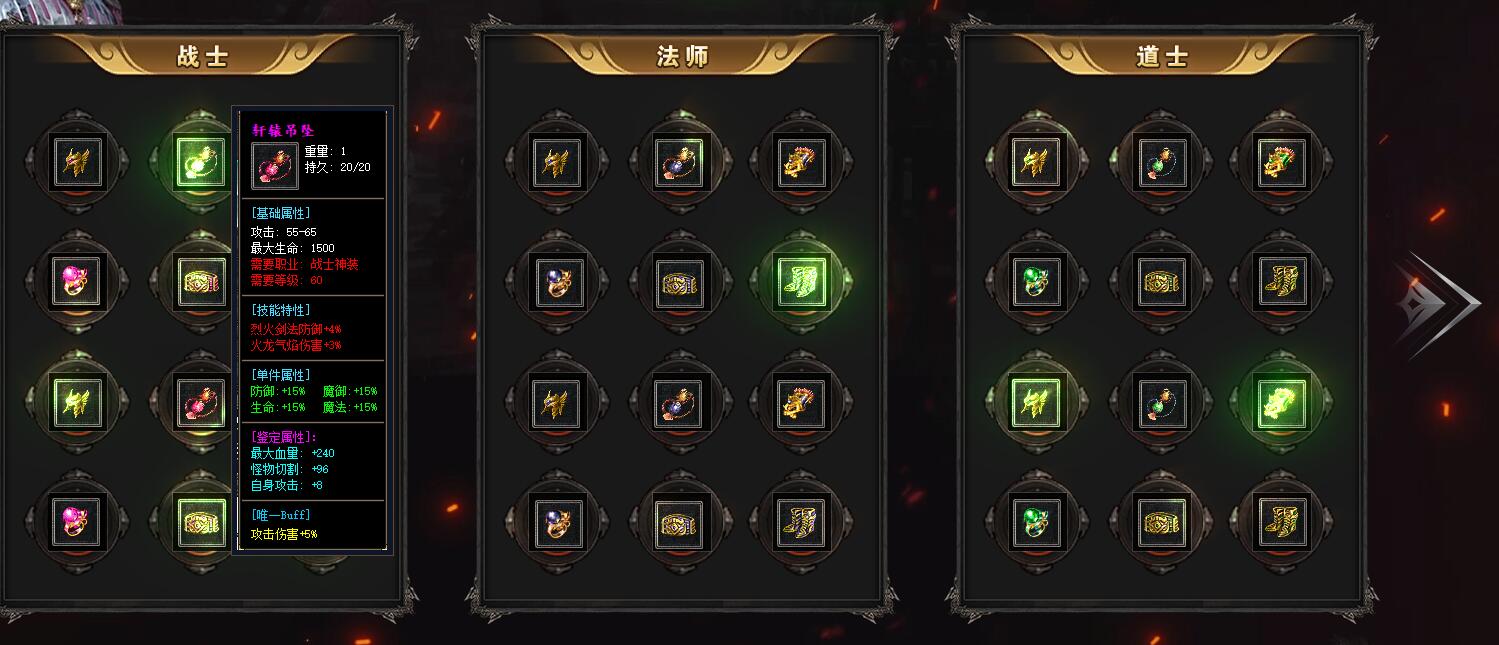 三大职业,微变属性系统,无冗余BUFF,核心货币为元宝。
