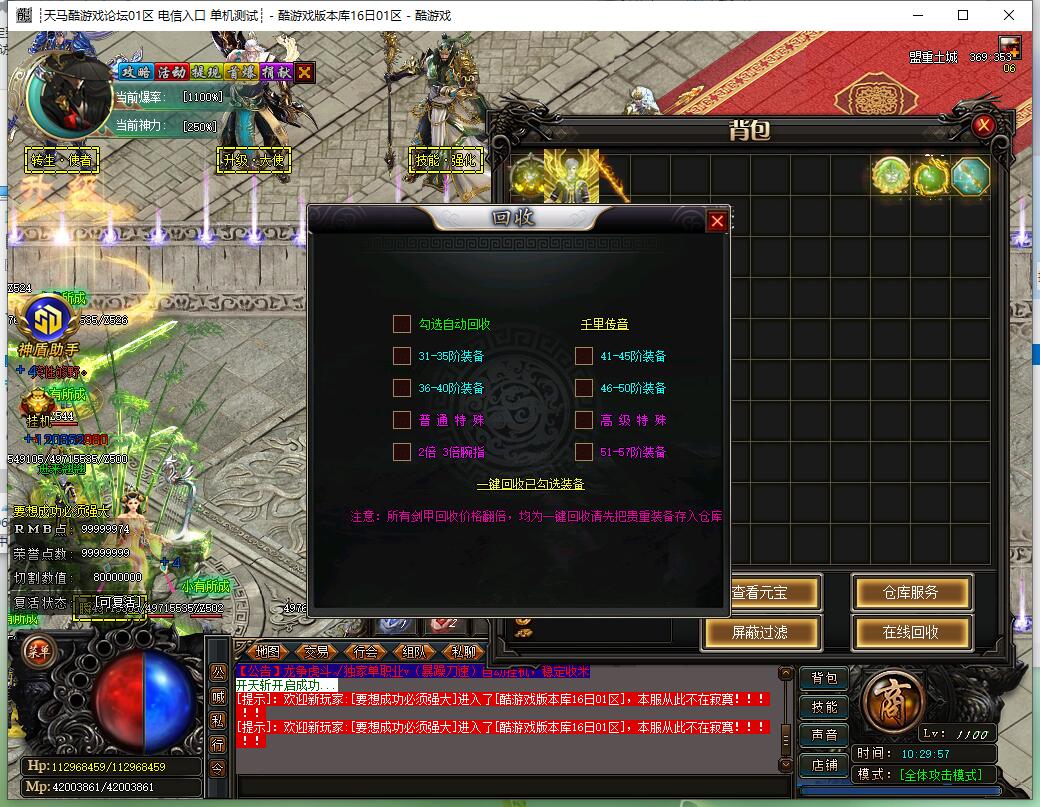 装备全爆,元宝好打,等级免费,地图免费,在线回收!