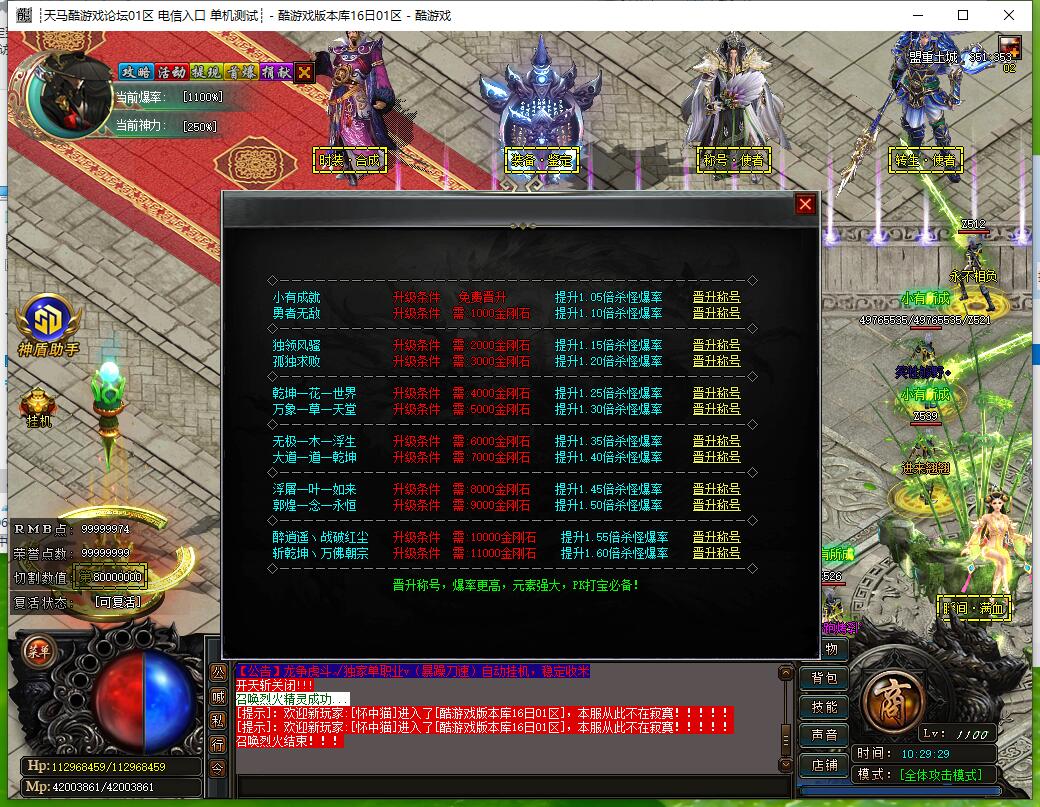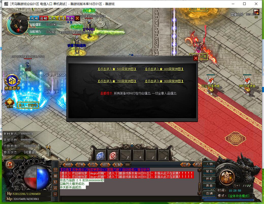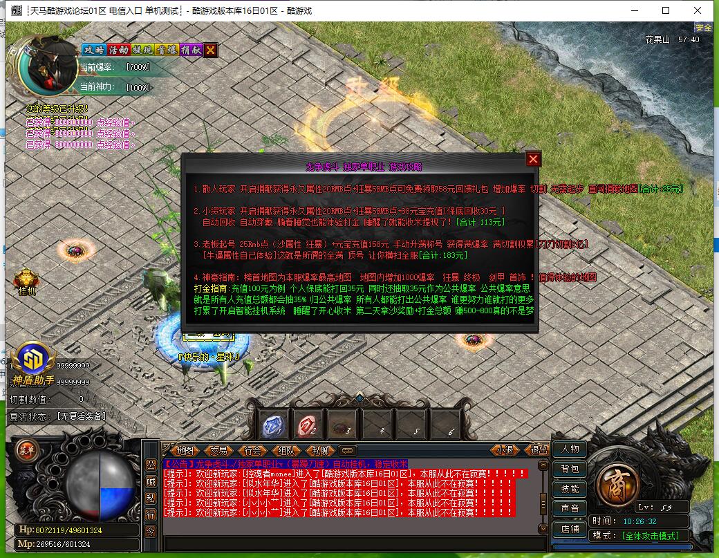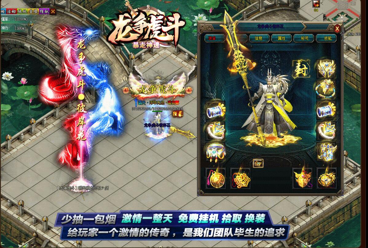 全民火龙单职业微变版本,纯散人服不花钱也可终极,一切靠打无合成,散人打金地图多怪物刷新速度快,装备货币保值,每日人品大爆发轻松300+收入。每天稳定四区开放(10:30 14:30 18:30 22:30),每个地图终极福利BOSS每晚22:01刷新,首区攻沙奖励RMB 588无封顶。市场最强封挂系统24小时接受举报,提醒设置二级密码防扫号。适度游戏益脑,拒绝盗版,享受健康生活。