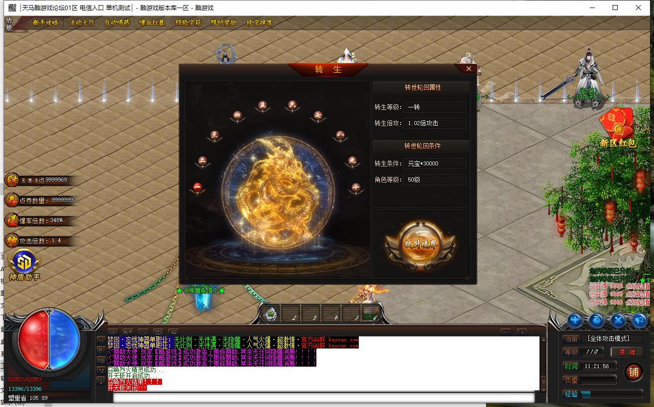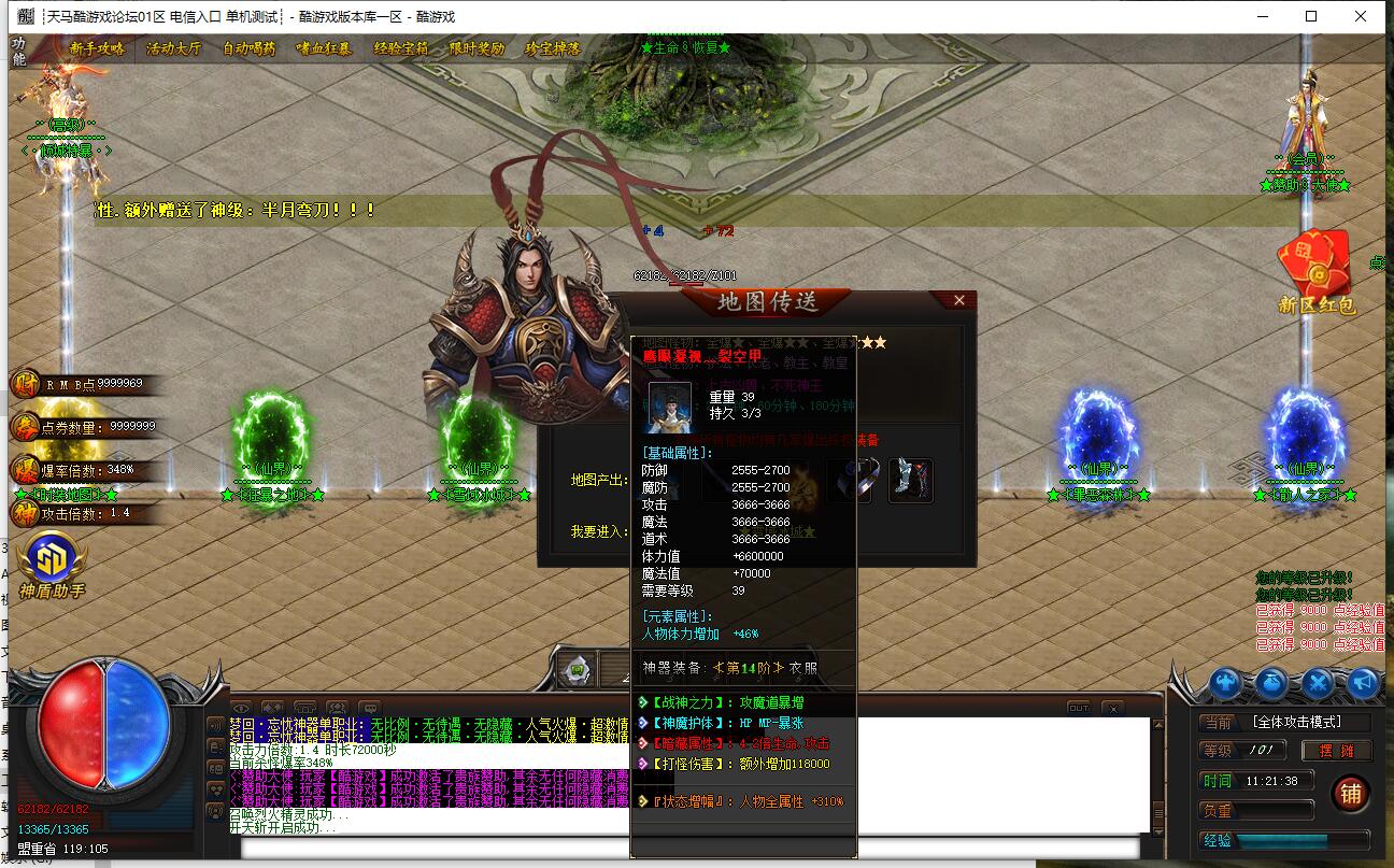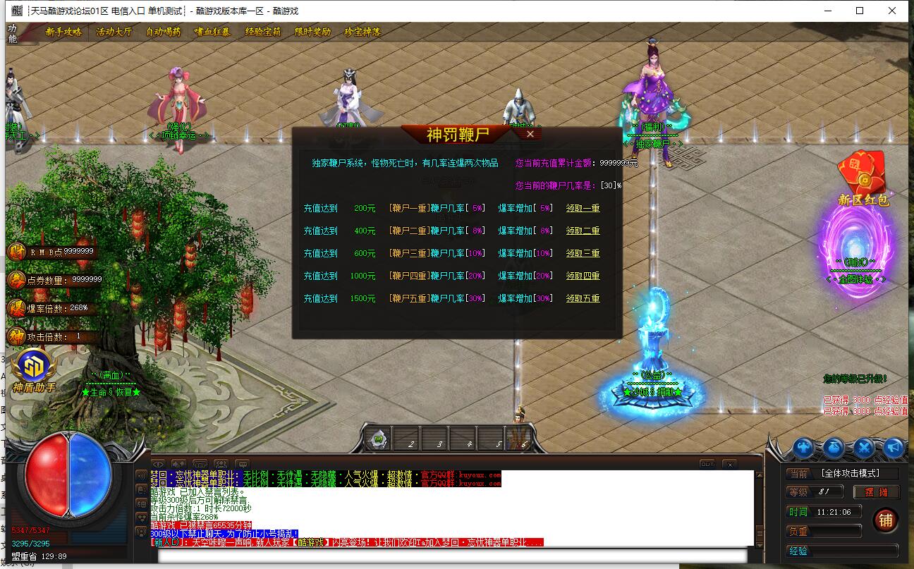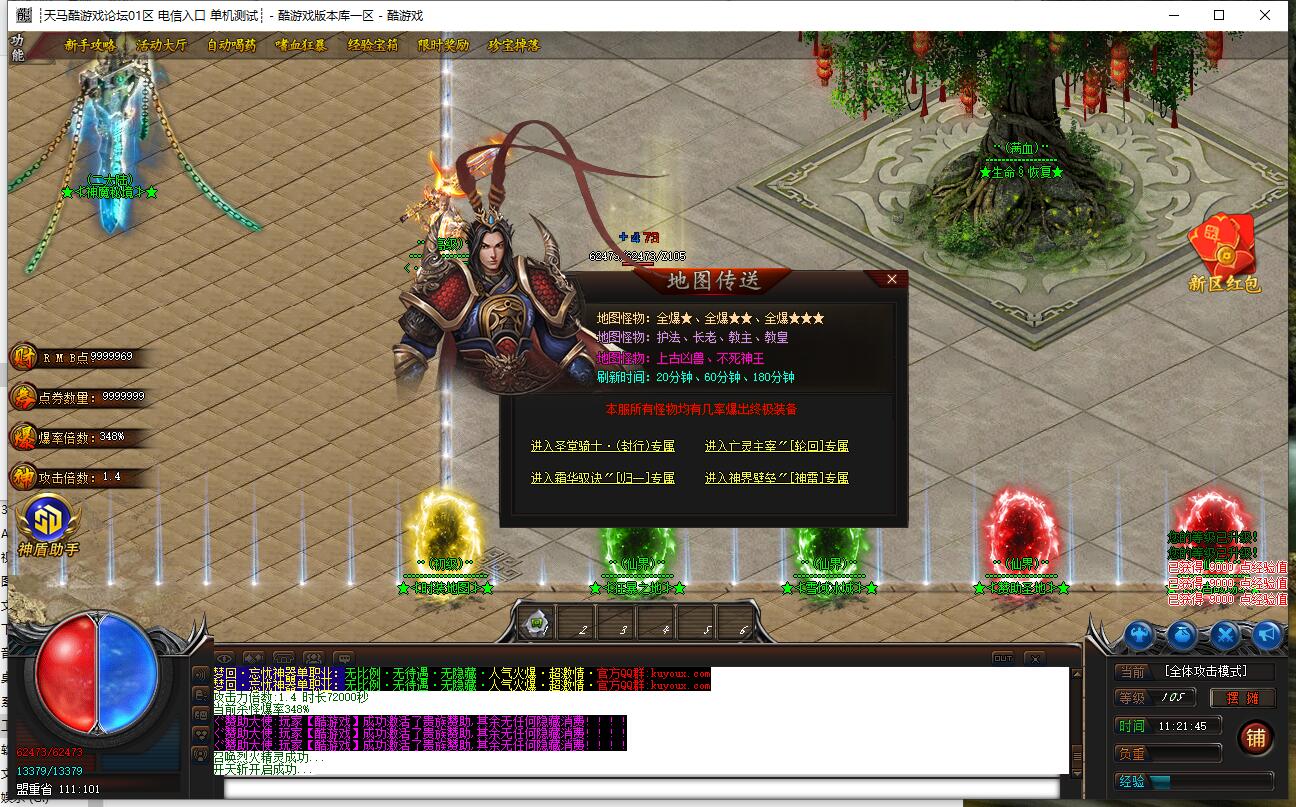 爆率介绍:小怪爆终极,小怪爆所有,小怪爆实物。妖兽满屏,地图超多,全天激情干。