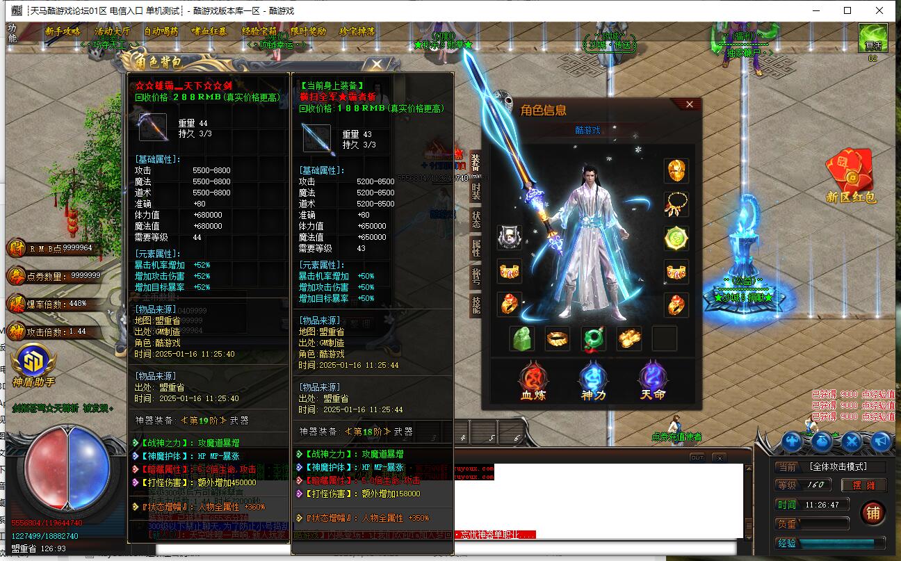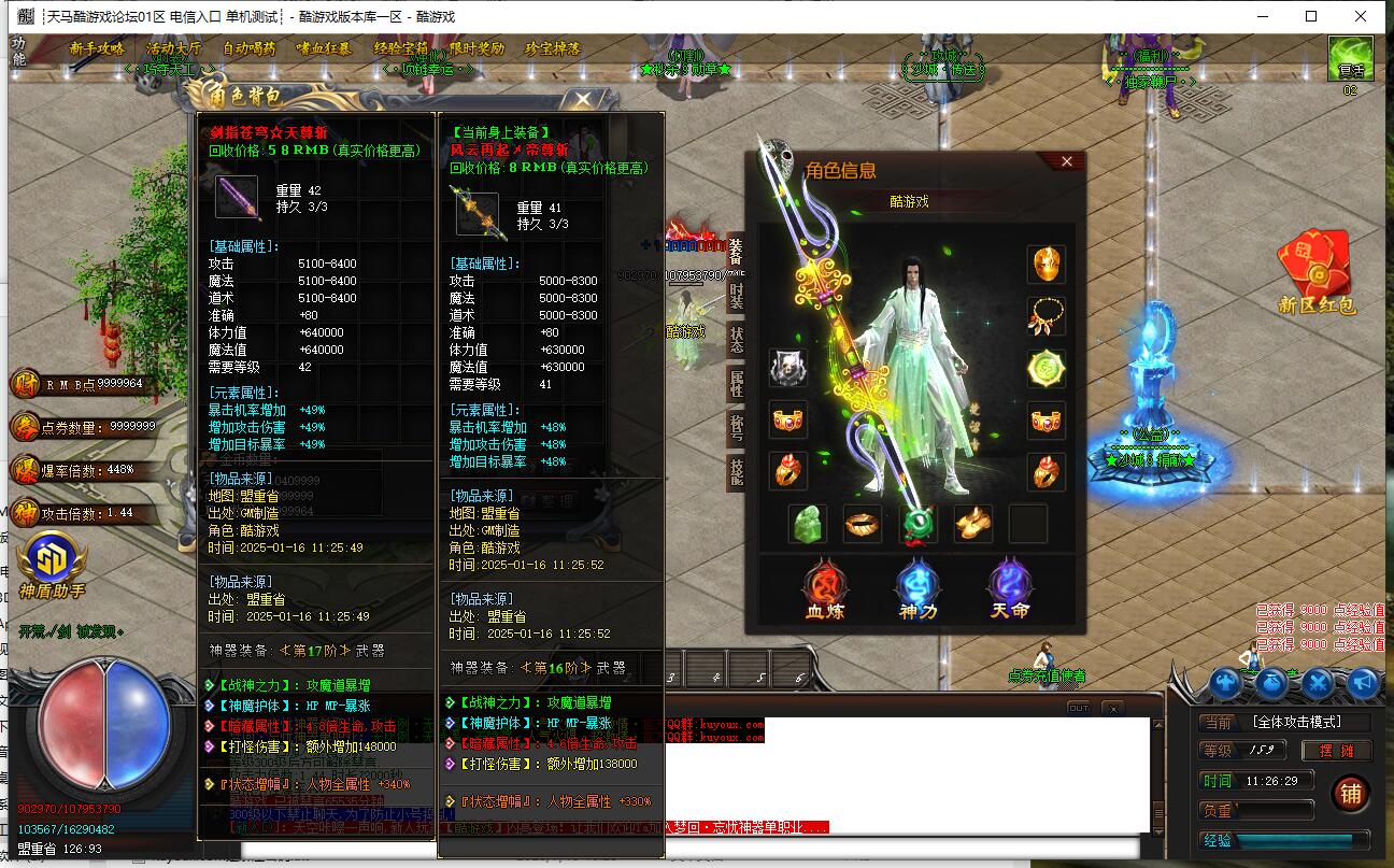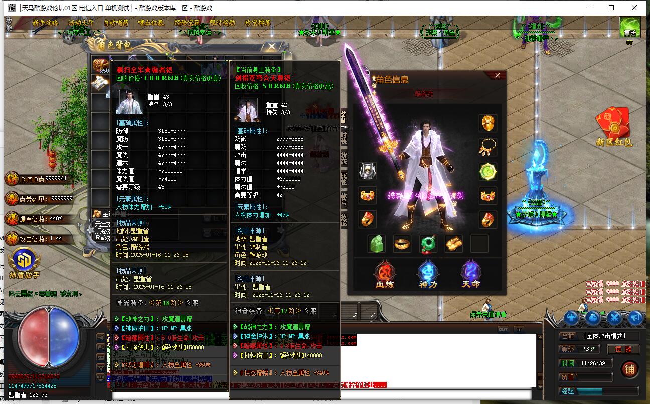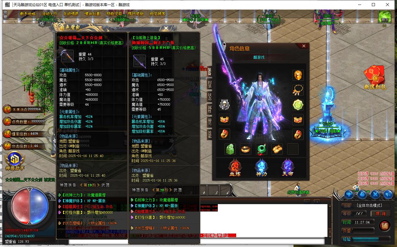 爆率介绍:小怪爆终极,小怪爆所有,小怪爆实物。妖兽满屏,地图超多,全天激情干。