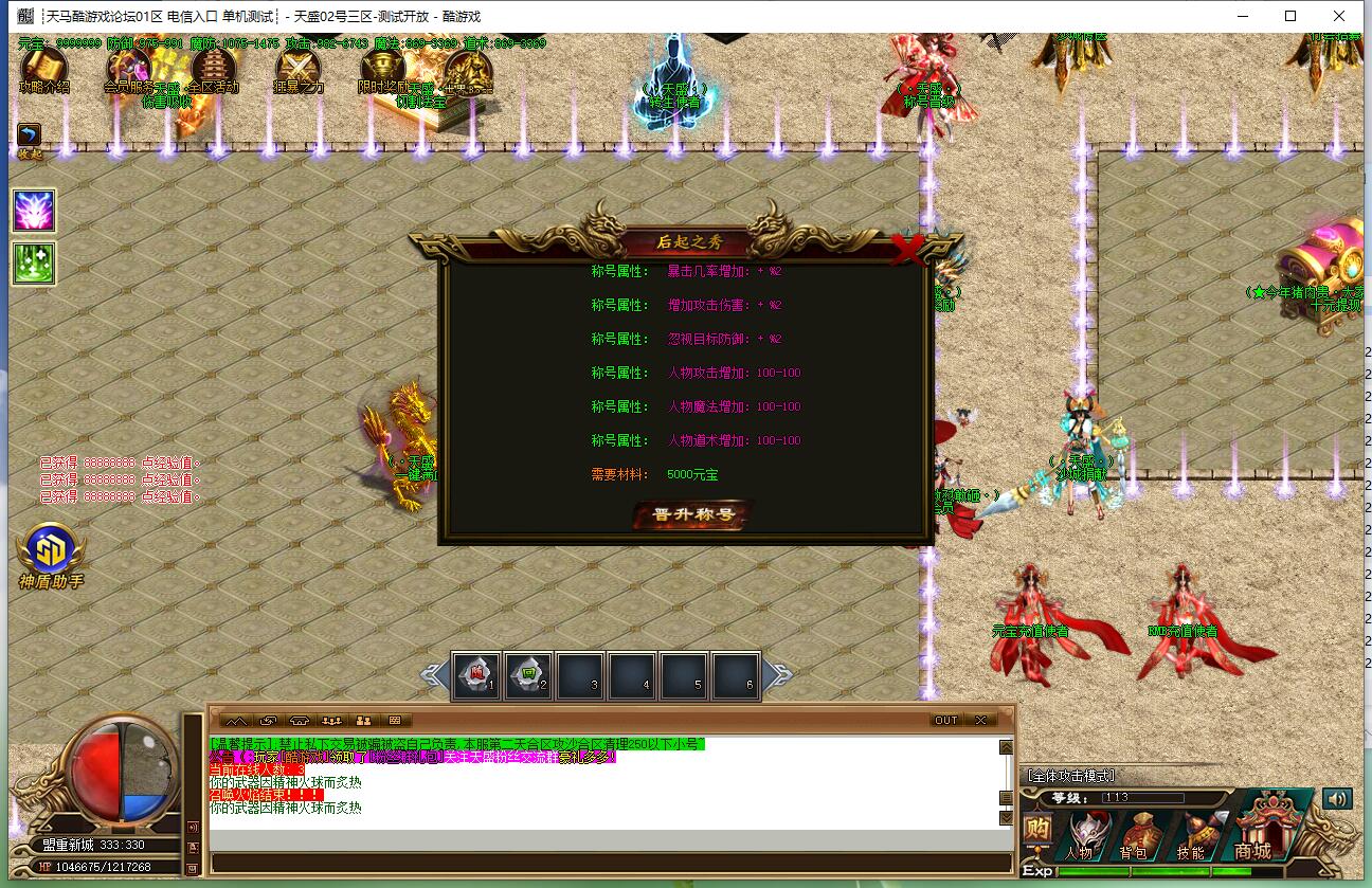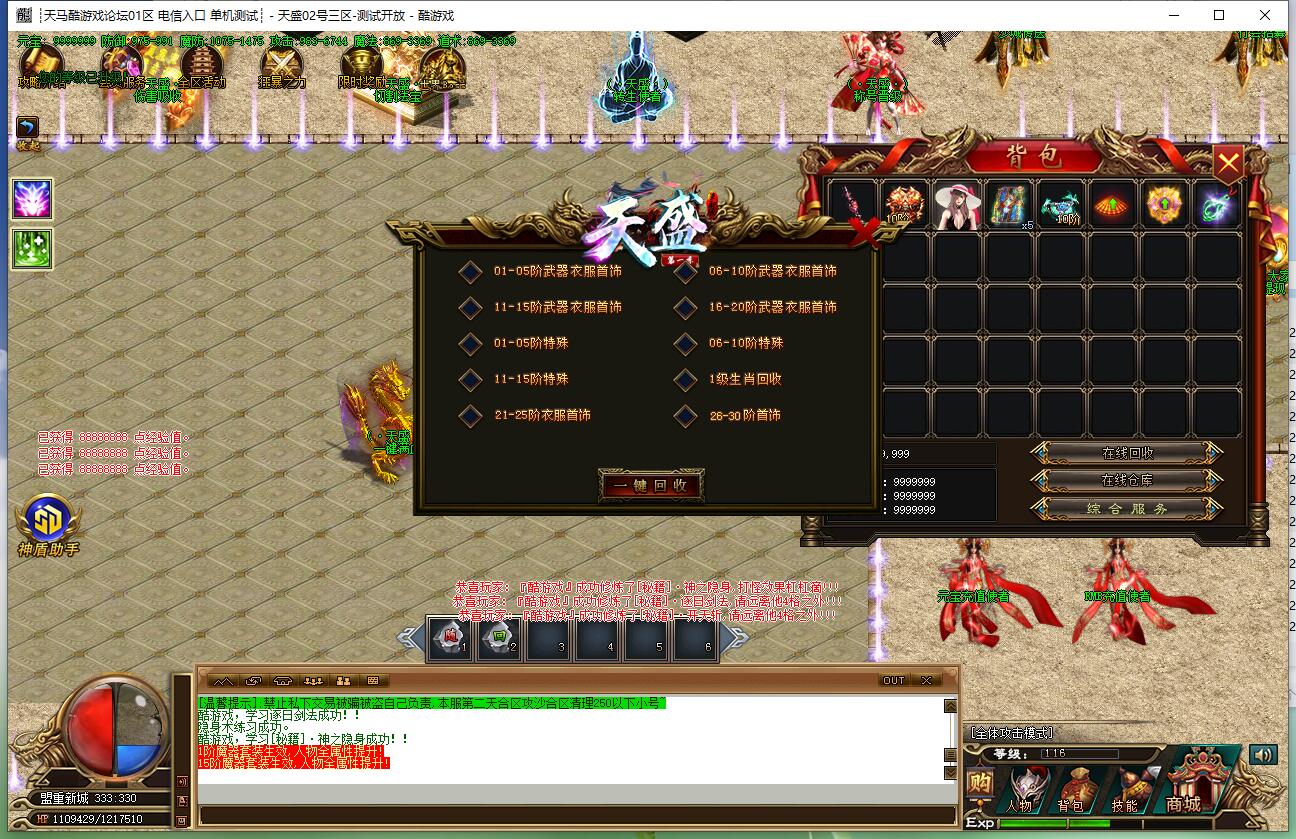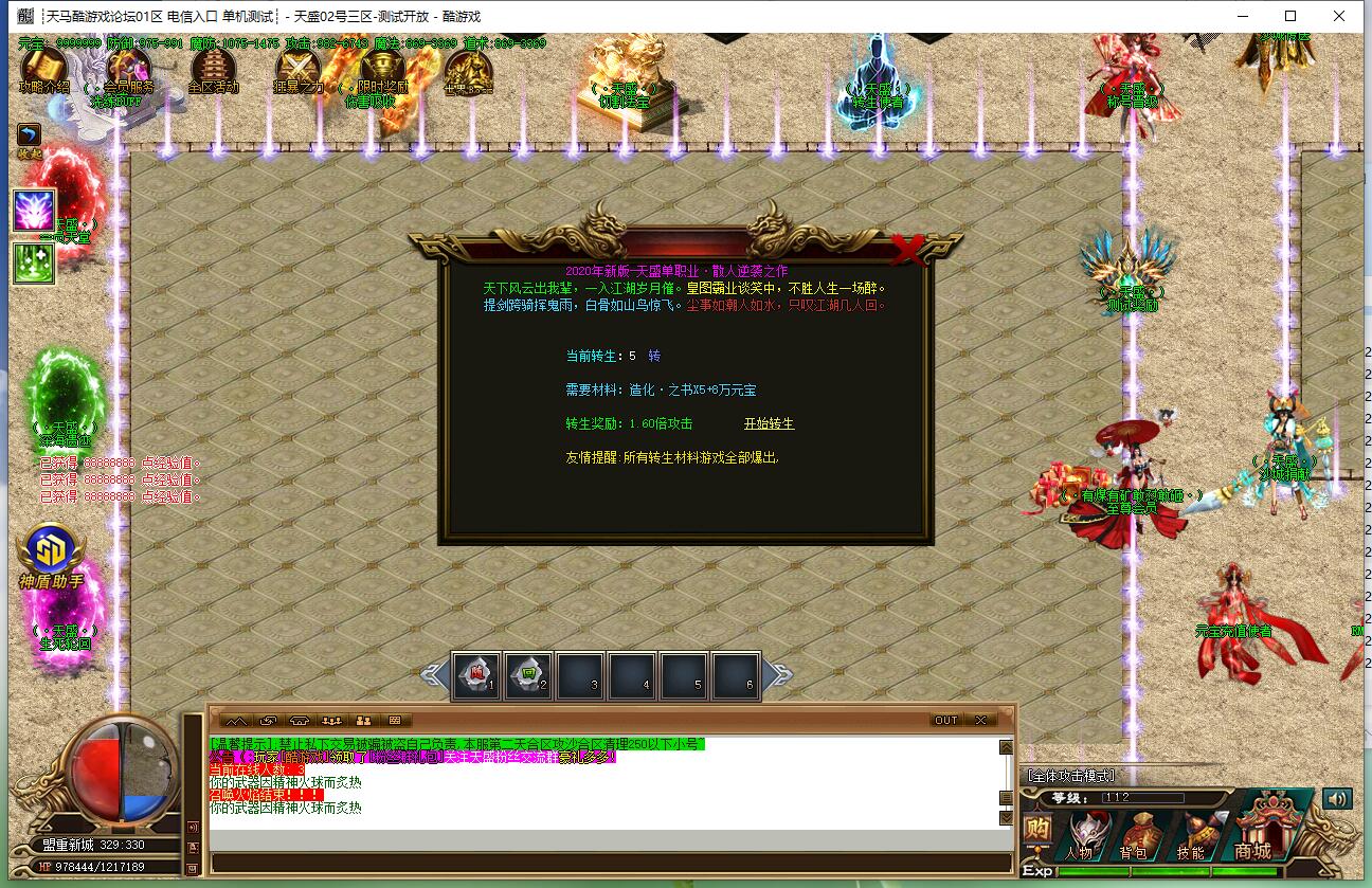开公平服,玩技术服,做良心服,是天盛传奇的宗旨。