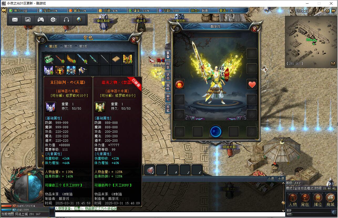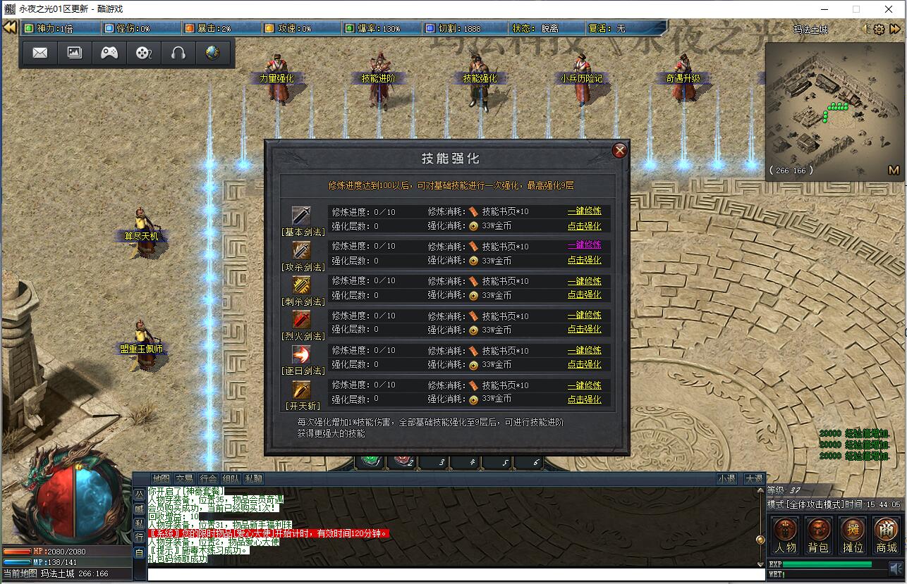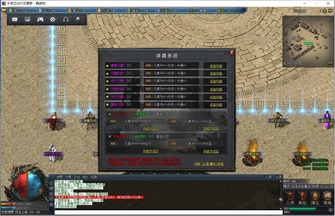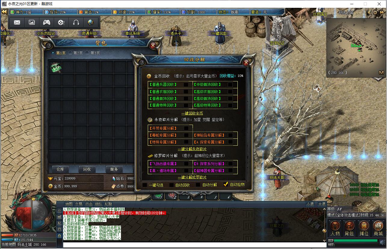 传奇游戏最新版本更新:新增智能挂机系统(入口位于综合服务内),优化所有怪物爆率(专属与材料爆率大幅提升),新增三个不爆物品,同步上线手写攻略(建议配合查询系统游玩,游戏难度适中)。增加元宝获取途径(杀怪即可获得元宝,适配后期高消耗需求),新增两个背包神器,调整金币获取规则(不同赞助等级对应不同获取量),金币回收倍率与赞助等级挂钩。修复3个剧情地图因不刷怪导致的中断问题,解决强化框不显示无法强化的故障,优化杀怪点变量及称号领取条件(一晚上可领完)。整理土城NPC布局(删除无用NPC,界面更整洁),新增GM可控真假爆率系统,优化人物初始攻速(非无限刀)。完成多处剧情地图问题修复与优化:赤沙龙城材料调整;剧情二四个NPC货币消耗、材料及概率优化(适配周服节奏);剧情三老者/尊者材料数量与成功率优化、老马猴/卖酒老头/定海神针合成修改、震天凯/穿针引线合成问题修复;云顶天宫进图条件调整,难度适当降低。
