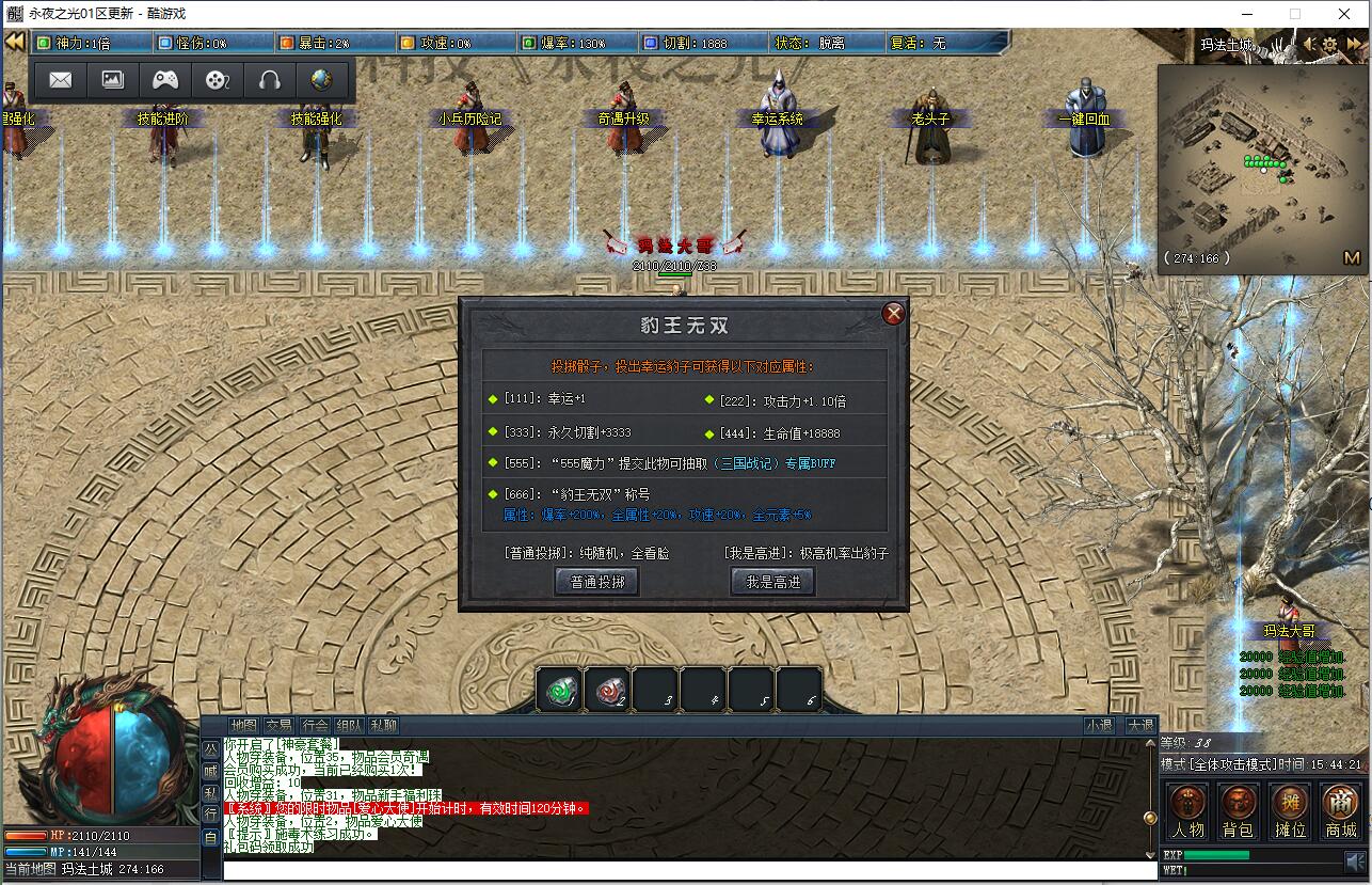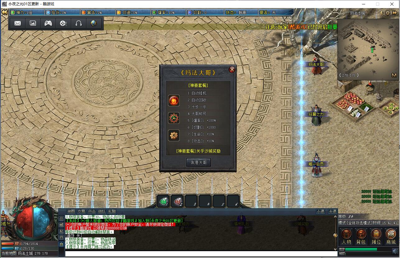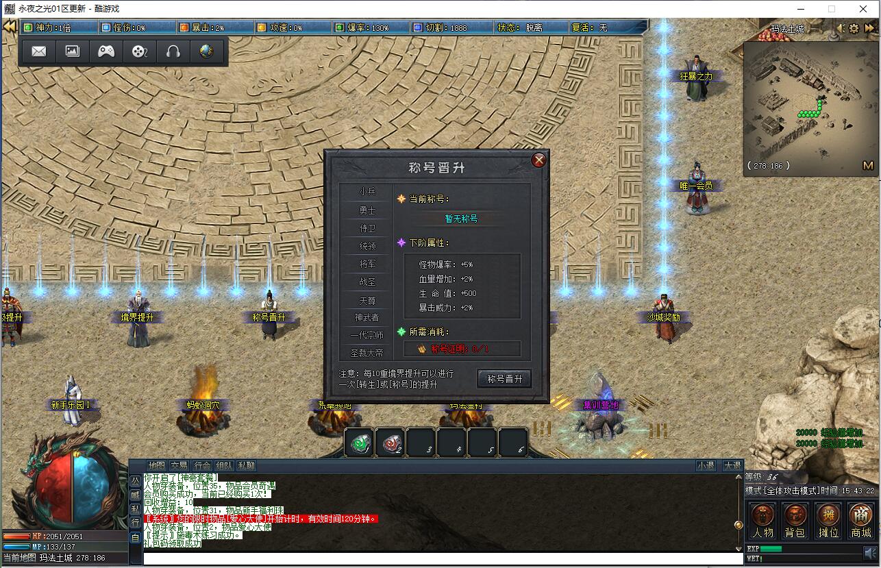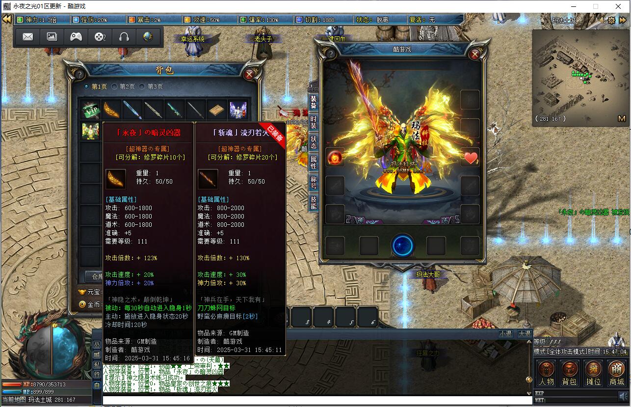 传奇游戏最新版本更新:新增智能挂机系统(入口位于综合服务内),优化所有怪物爆率(专属与材料爆率大幅提升),新增三个不爆物品,同步上线手写攻略(建议配合查询系统游玩,游戏难度适中)。增加元宝获取途径(杀怪即可获得元宝,适配后期高消耗需求),新增两个背包神器,调整金币获取规则(不同赞助等级对应不同获取量),金币回收倍率与赞助等级挂钩。修复3个剧情地图因不刷怪导致的中断问题,解决强化框不显示无法强化的故障,优化杀怪点变量及称号领取条件(一晚上可领完)。整理土城NPC布局(删除无用NPC,界面更整洁),新增GM可控真假爆率系统,优化人物初始攻速(非无限刀)。完成多处剧情地图问题修复与优化:赤沙龙城材料调整;剧情二四个NPC货币消耗、材料及概率优化(适配周服节奏);剧情三老者/尊者材料数量与成功率优化、老马猴/卖酒老头/定海神针合成修改、震天凯/穿针引线合成问题修复;云顶天宫进图条件调整,难度适当降低。