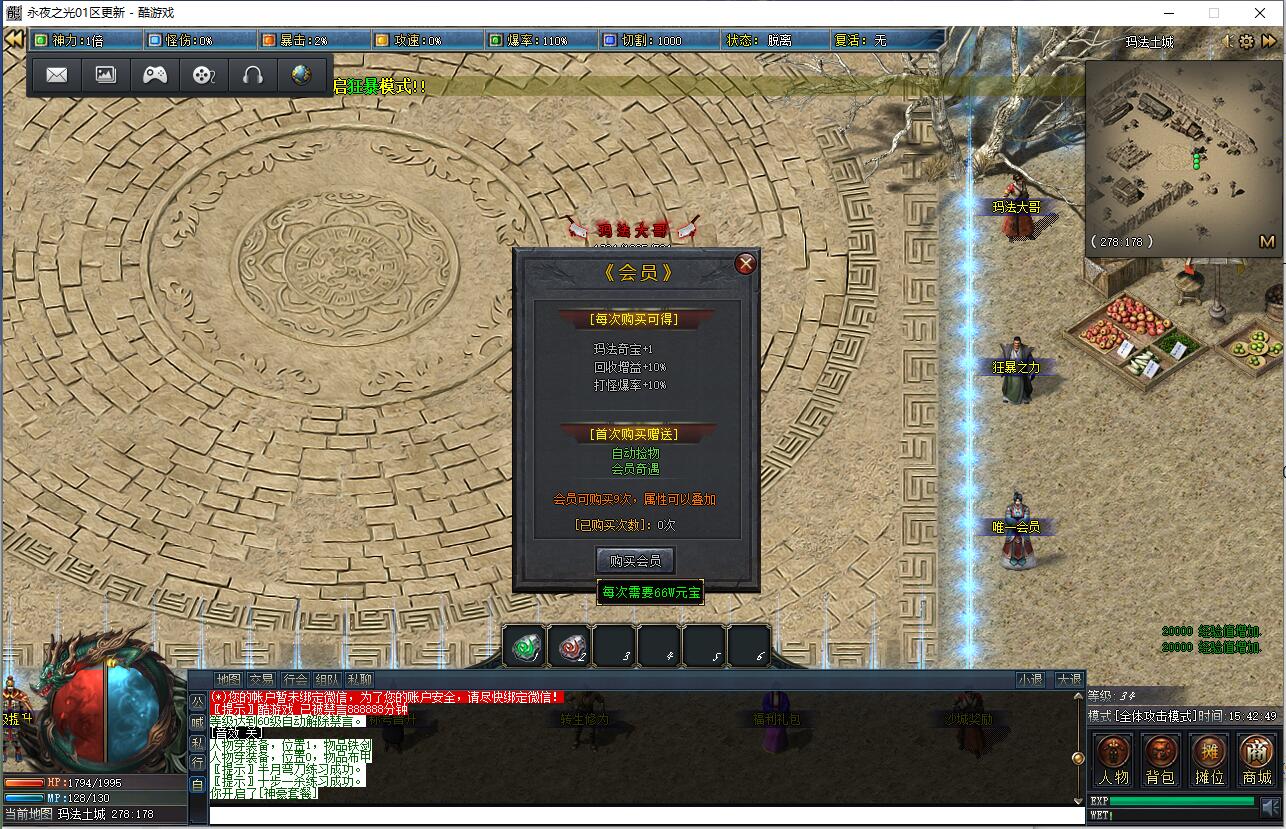 沉默降临是一款情怀单职业传奇游戏,定位公益追梦版,为长期服,装备保值,拒绝快餐模式。特色包含唯一赞助3600沉默币狂暴之力,300沉默币普通沙捐,2000沉默币神豪沙捐,3000沉默币神魔保底(保底8800沉默币)。账号档次分两档:落地全满号(狂暴3+沙捐50+赞助36+神魔88,共177元)、大哥全满号(含额外祈福20次,共353元),无隐藏消费与比例。宝宝成长:0级战兽、50级高级战兽、55级超级战兽、58级终极战兽(群攻)。开荒路线:落地矿区打白怪(狂风项链戒指)→全图圣兽→粉色装备(爪子吸血头)→渡劫选左边吸血命格→合特殊优先盾→开黄(紫色追梦效率低不建议)→开红(可卡怪或堆属性)→开人行。重要提示:十步一杀在56级震天宫三层花费888万金币获得,入口坐标97.17,称号卷轴通过活动或蓝色怪(圣兽)、恭喜发财爆出。郑重承诺爆率全开、公平公正,听取玩家意见重金酬谢,致力于良好游戏体验。沉默币充值比例1:100。