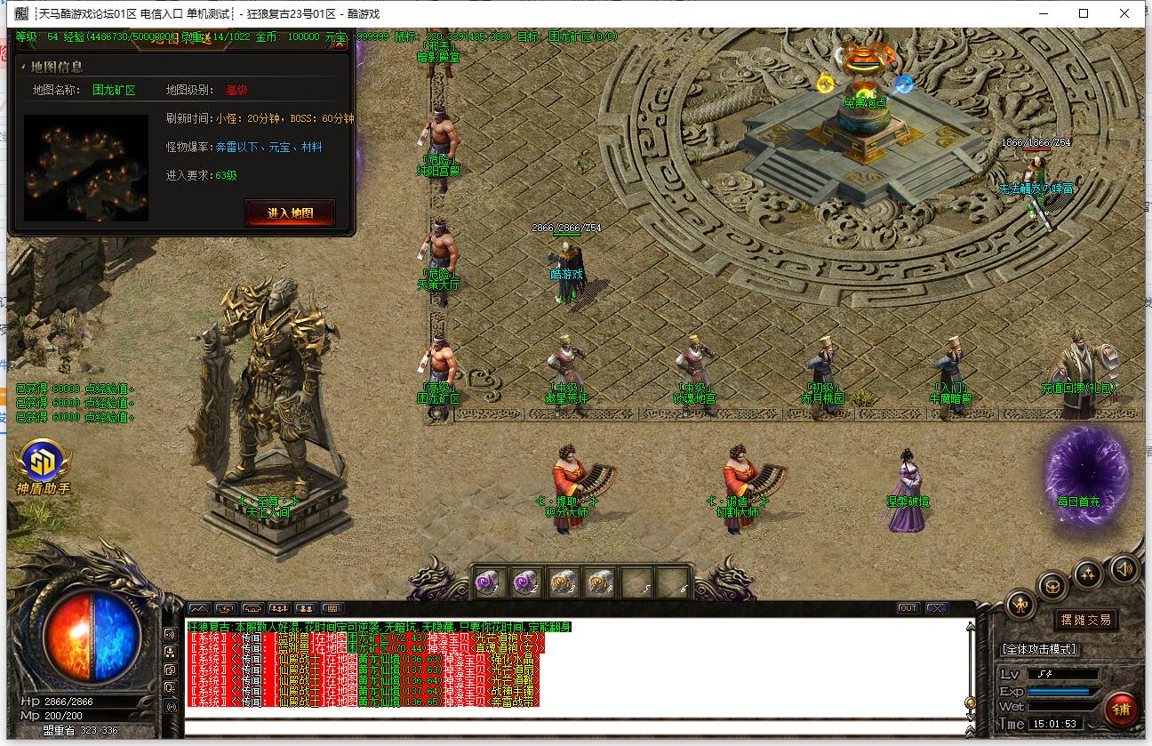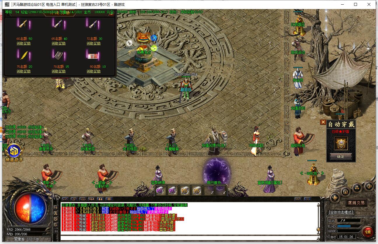 全民火龙单职业微变版本,纯散人服不花钱也可终极,一切靠打无合成,散人打金地图多怪物刷新速度快,装备货币保值,每日人品大爆发轻松300+收入。每天稳定四区开放(10:30 14:30 18:30 22:30),每个地图终极福利BOSS每晚22:01刷新,首区攻沙奖励RMB 588无封顶。市场最强封挂系统24小时接受举报,提醒设置二级密码防扫号。适度游戏益脑,拒绝盗版,享受健康生活。