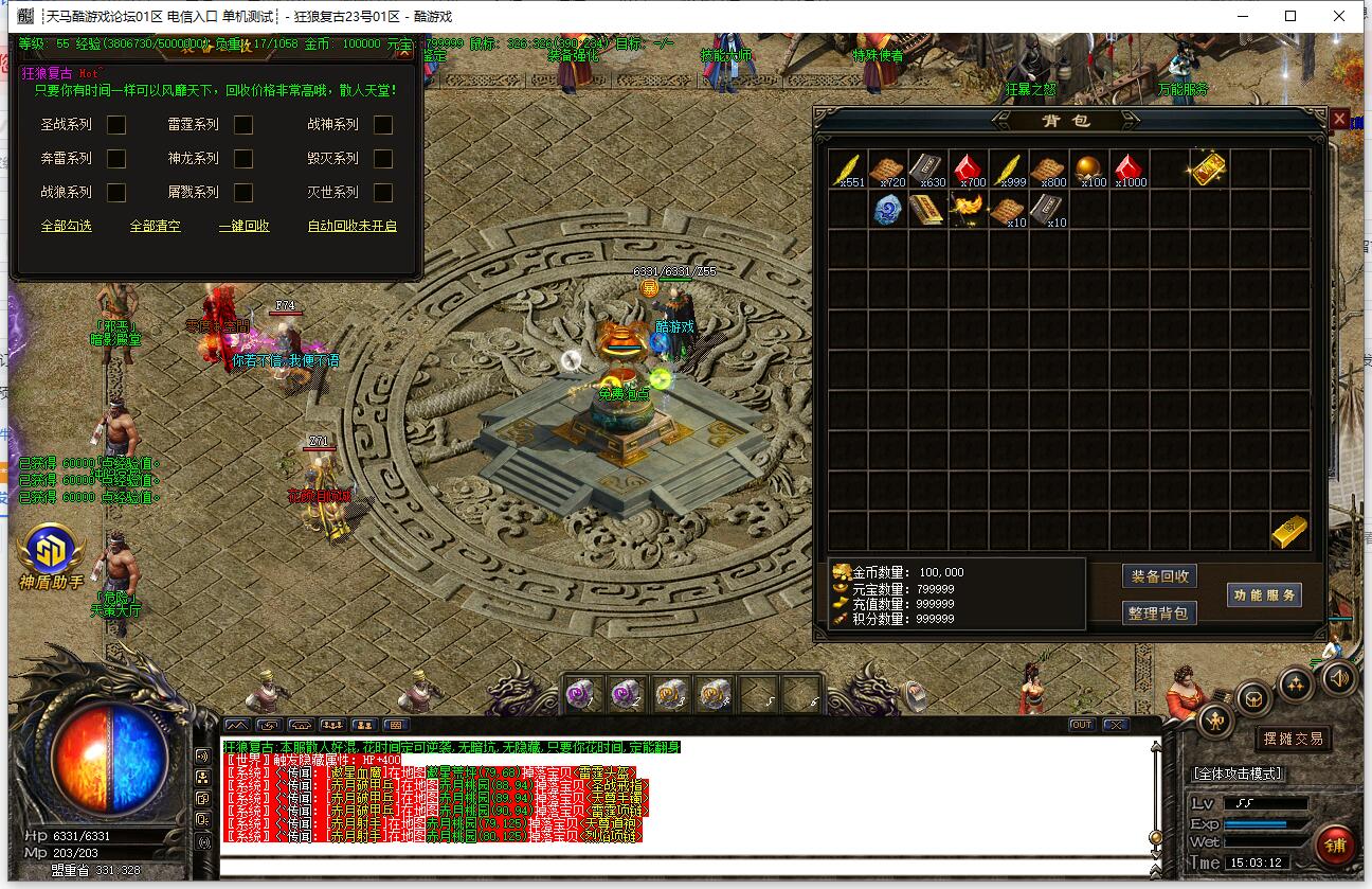 本服还原干净聊天框,无垃圾信息及回收提示,商铺不售材料全靠打怪,永久回收物品均由怪物爆出。游戏问题可QQ群联系客服完美解答,无论是否消费均用心服务,所有玩家公平对待。交易安全需通过商铺RMB点交易,提现手续费仅10%;私下交易一经查实封号并清除提现记录;禁止自动刷屏、骂人小号占安全区,违者警告或封号;严禁加速脱机外挂,发现必删永不解封。
