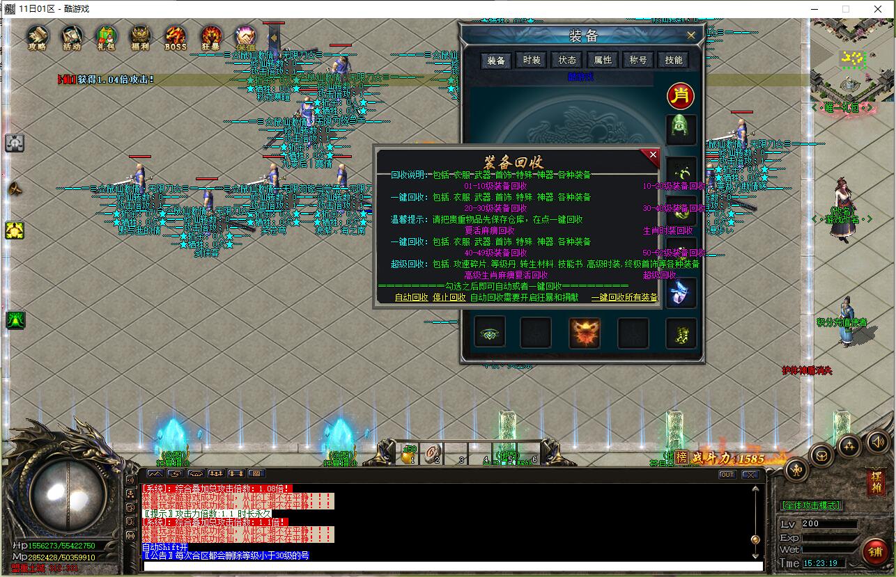 传奇游戏最新版本更新:新增智能挂机系统(入口位于综合服务内),优化所有怪物爆率(专属与材料爆率大幅提升),新增三个不爆物品,同步上线手写攻略(建议配合查询系统游玩,游戏难度适中)。增加元宝获取途径(杀怪即可获得元宝,适配后期高消耗需求),新增两个背包神器,调整金币获取规则(不同赞助等级对应不同获取量),金币回收倍率与赞助等级挂钩。修复3个剧情地图因不刷怪导致的中断问题,解决强化框不显示无法强化的故障,优化杀怪点变量及称号领取条件(一晚上可领完)。整理土城NPC布局(删除无用NPC,界面更整洁),新增GM可控真假爆率系统,优化人物初始攻速(非无限刀)。完成多处剧情地图问题修复与优化:赤沙龙城材料调整;剧情二四个NPC货币消耗、材料及概率优化(适配周服节奏);剧情三老者/尊者材料数量与成功率优化、老马猴/卖酒老头/定海神针合成修改、震天凯/穿针引线合成问题修复;云顶天宫进图条件调整,难度适当降低。