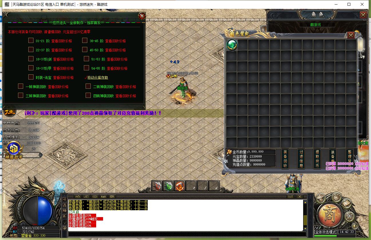 本服还原干净聊天框,无垃圾信息及回收提示,商铺不售材料全靠打怪,永久回收物品均由怪物爆出。游戏问题可QQ群联系客服完美解答,无论是否消费均用心服务,所有玩家公平对待。交易安全需通过商铺RMB点交易,提现手续费仅10%;私下交易一经查实封号并清除提现记录;禁止自动刷屏、骂人小号占安全区,违者警告或封号;严禁加速脱机外挂,发现必删永不解封。
