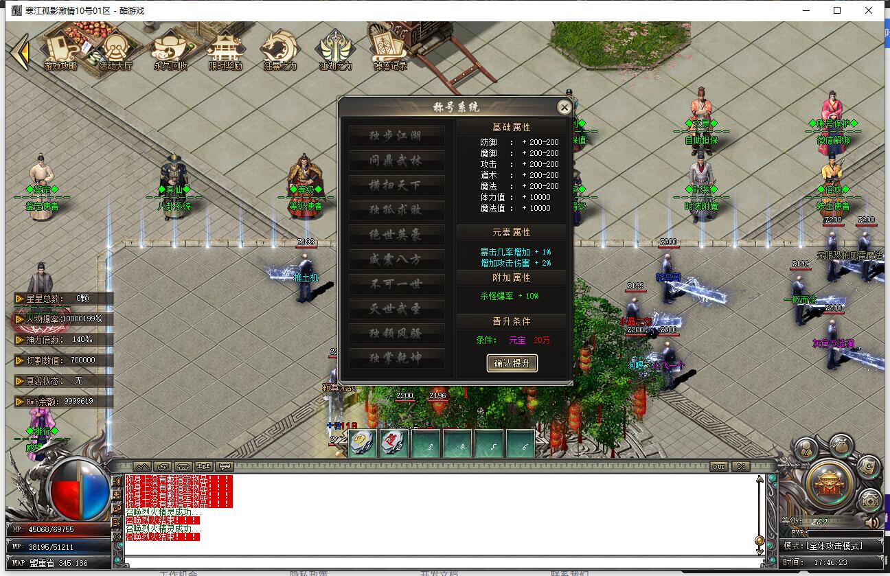 | 介绍1:渡劫9级神秘超级属性! 强大的属性称号 |