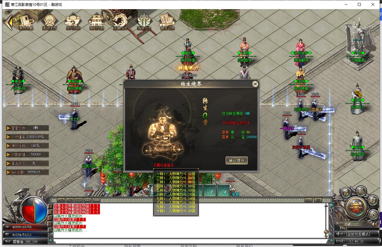 | 介绍1:1大陆提升01-10转,全部只要元宝,总的提升1.2倍神力 |