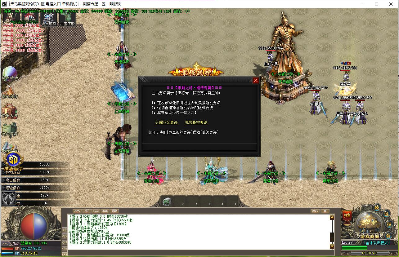 本服还原干净聊天框,无垃圾信息及回收提示,商铺不售材料全靠打怪,永久回收物品均由怪物爆出。游戏问题可QQ群联系客服完美解答,无论是否消费均用心服务,所有玩家公平对待。交易安全需通过商铺RMB点交易,提现手续费仅10%;私下交易一经查实封号并清除提现记录;禁止自动刷屏、骂人小号占安全区,违者警告或封号;严禁加速脱机外挂,发现必删永不解封。