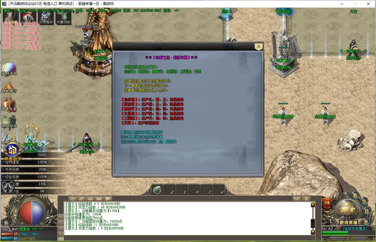 全民火龙单职业微变版本,纯散人服不花钱也可终极,一切靠打无合成,散人打金地图多怪物刷新速度快,装备货币保值,每日人品大爆发轻松300+收入。每天稳定四区开放(10:30 14:30 18:30 22:30),每个地图终极福利BOSS每晚22:01刷新,首区攻沙奖励RMB 588无封顶。市场最强封挂系统24小时接受举报,提醒设置二级密码防扫号。适度游戏益脑,拒绝盗版,享受健康生活。