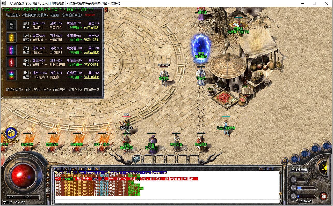 独创血脉体系,免费晋升,附带超强血技。首创神通体系,各种强大打怪增益。独创装备修为体系,高极品几率觉醒,狠强!