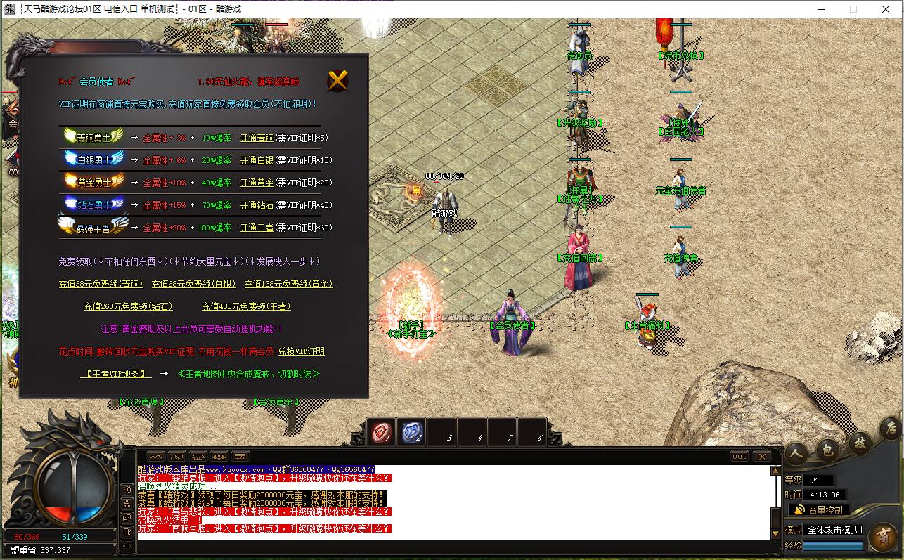 本服还原干净聊天框,无垃圾信息及回收提示,商铺不售材料全靠打怪,永久回收物品均由怪物爆出。游戏问题可QQ群联系客服完美解答,无论是否消费均用心服务,所有玩家公平对待。交易安全需通过商铺RMB点交易,提现手续费仅10%;私下交易一经查实封号并清除提现记录;禁止自动刷屏、骂人小号占安全区,违者警告或封号;严禁加速脱机外挂,发现必删永不解封。