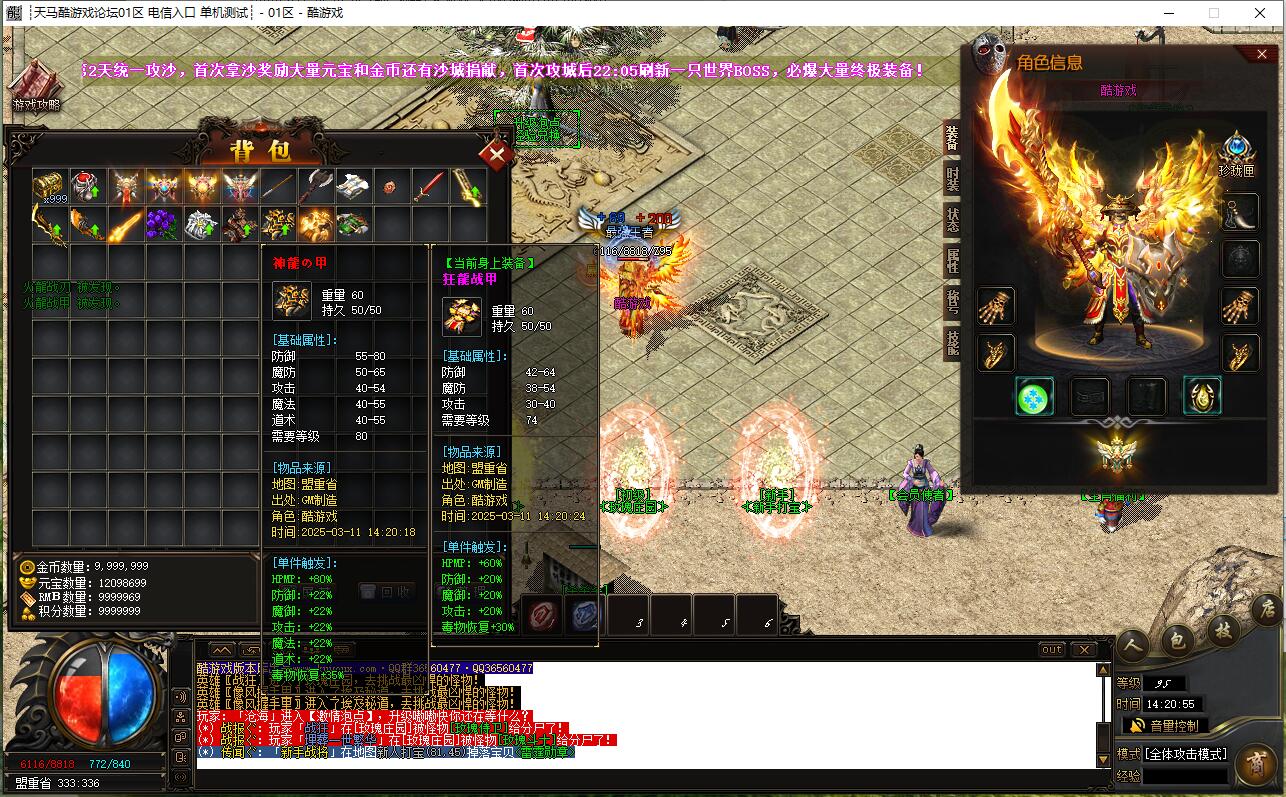 全民火龙单职业微变版本,纯散人服不花钱也可终极,一切靠打无合成,散人打金地图多怪物刷新速度快,装备货币保值,每日人品大爆发轻松300+收入。每天稳定四区开放(10:30 14:30 18:30 22:30),每个地图终极福利BOSS每晚22:01刷新,首区攻沙奖励RMB 588无封顶。市场最强封挂系统24小时接受举报,提醒设置二级密码防扫号。适度游戏益脑,拒绝盗版,享受健康生活。
