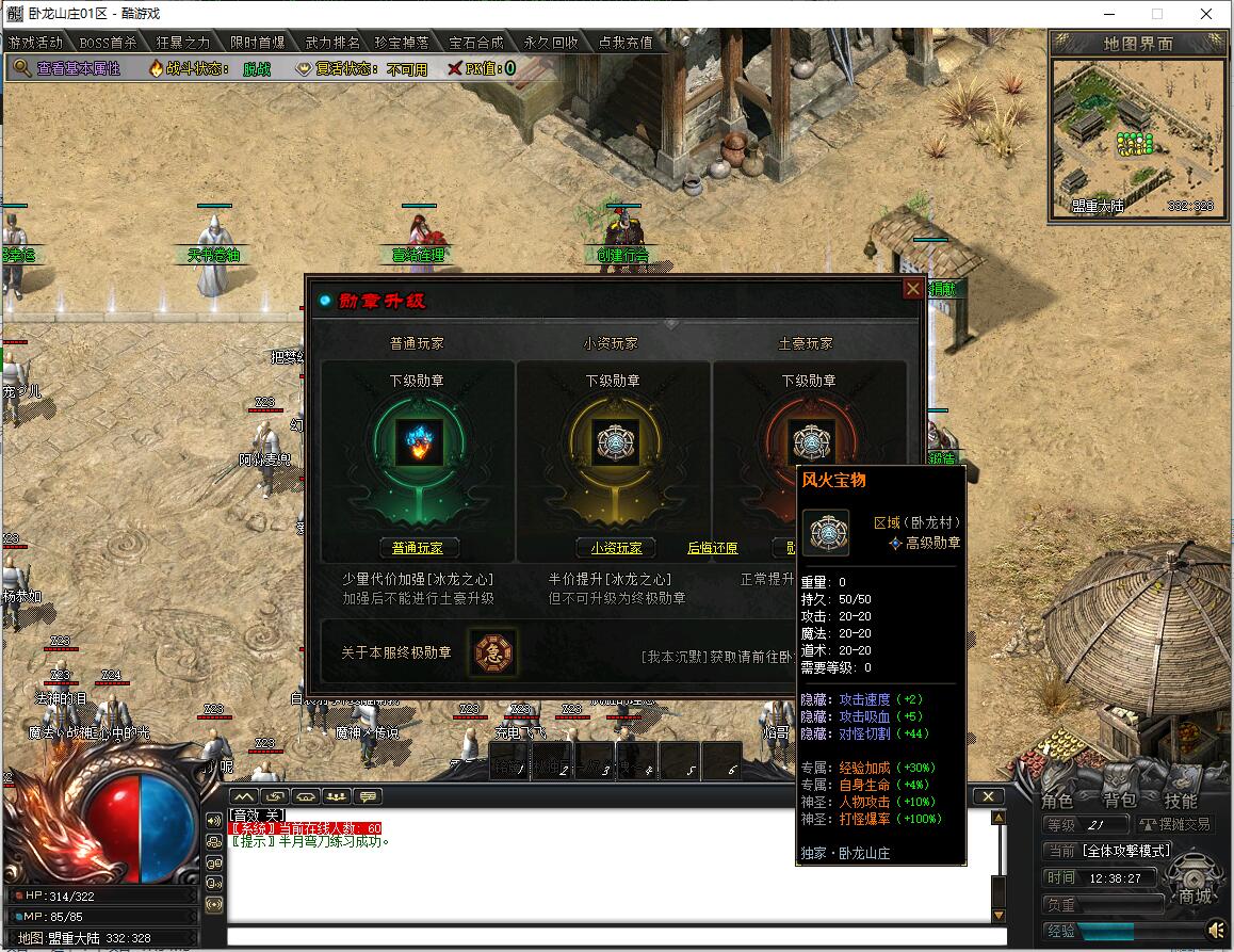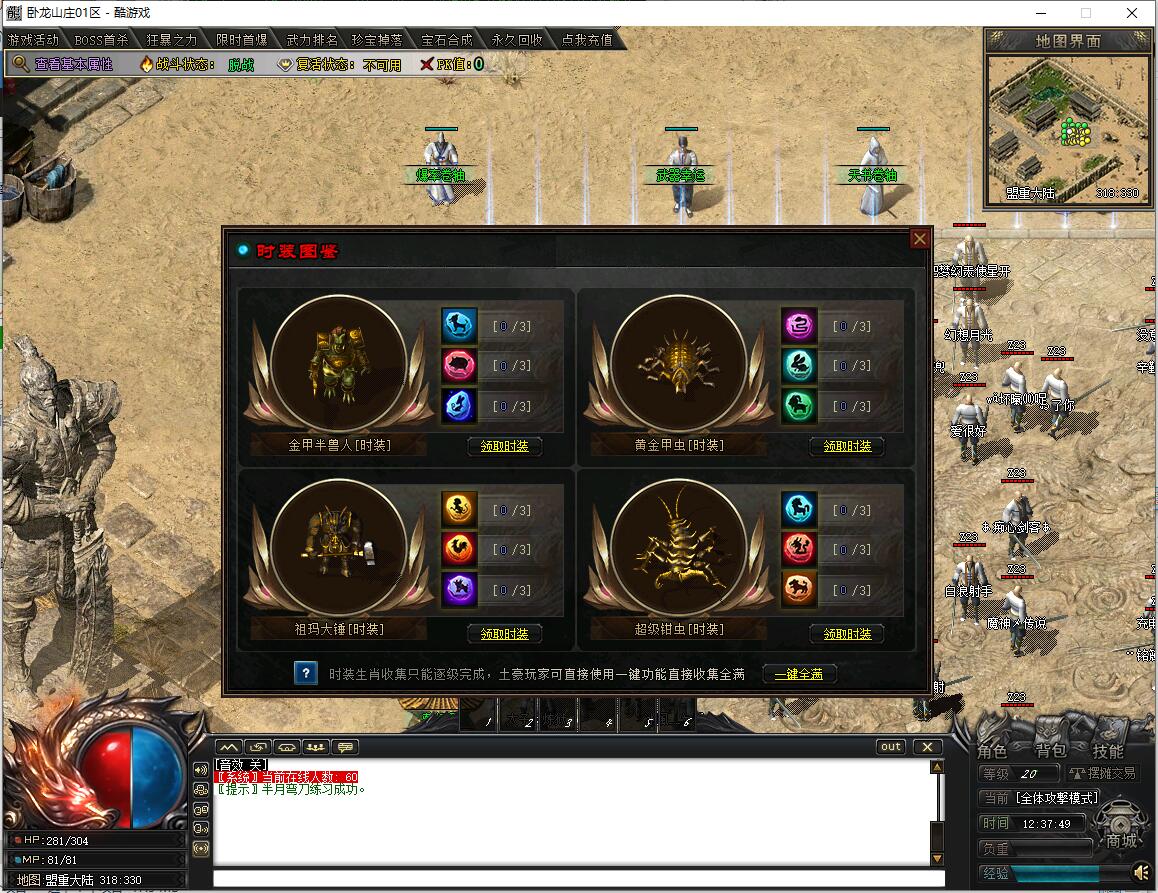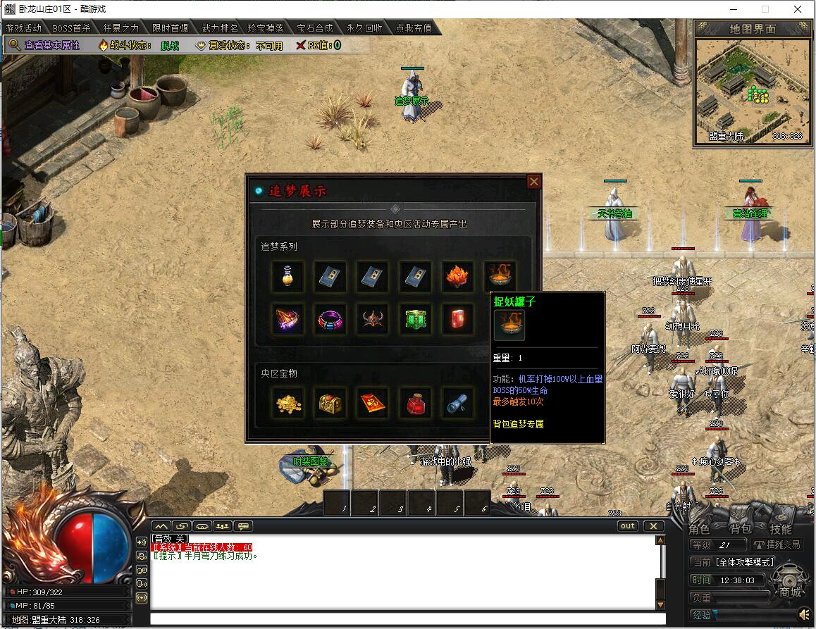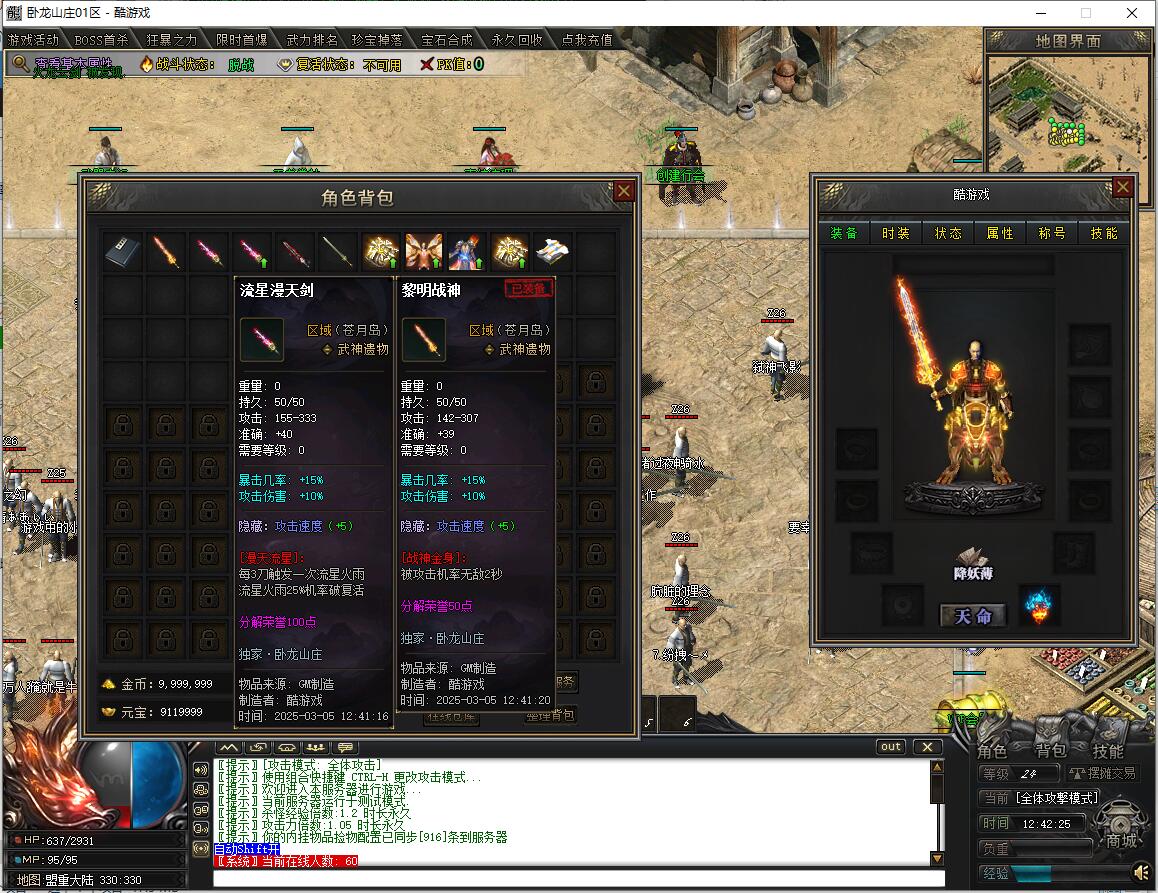 传奇游戏最新版本更新:新增智能挂机系统(入口位于综合服务内),优化所有怪物爆率(专属与材料爆率大幅提升),新增三个不爆物品,同步上线手写攻略(建议配合查询系统游玩,游戏难度适中)。增加元宝获取途径(杀怪即可获得元宝,适配后期高消耗需求),新增两个背包神器,调整金币获取规则(不同赞助等级对应不同获取量),金币回收倍率与赞助等级挂钩。修复3个剧情地图因不刷怪导致的中断问题,解决强化框不显示无法强化的故障,优化杀怪点变量及称号领取条件(一晚上可领完)。整理土城NPC布局(删除无用NPC,界面更整洁),新增GM可控真假爆率系统,优化人物初始攻速(非无限刀)。完成多处剧情地图问题修复与优化:赤沙龙城材料调整;剧情二四个NPC货币消耗、材料及概率优化(适配周服节奏);剧情三老者/尊者材料数量与成功率优化、老马猴/卖酒老头/定海神针合成修改、震天凯/穿针引线合成问题修复;云顶天宫进图条件调整,难度适当降低。