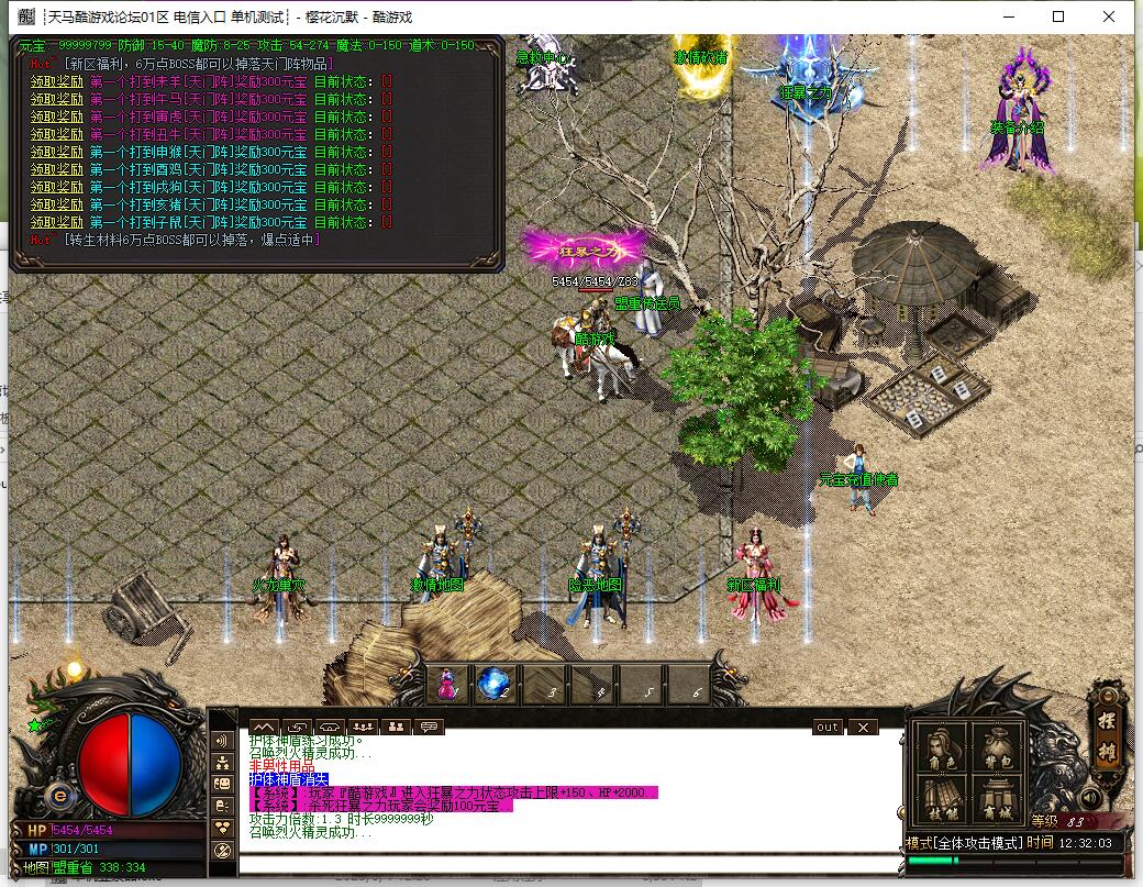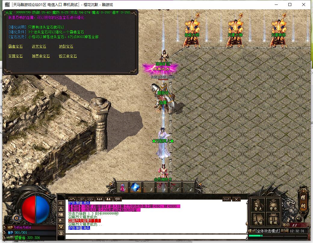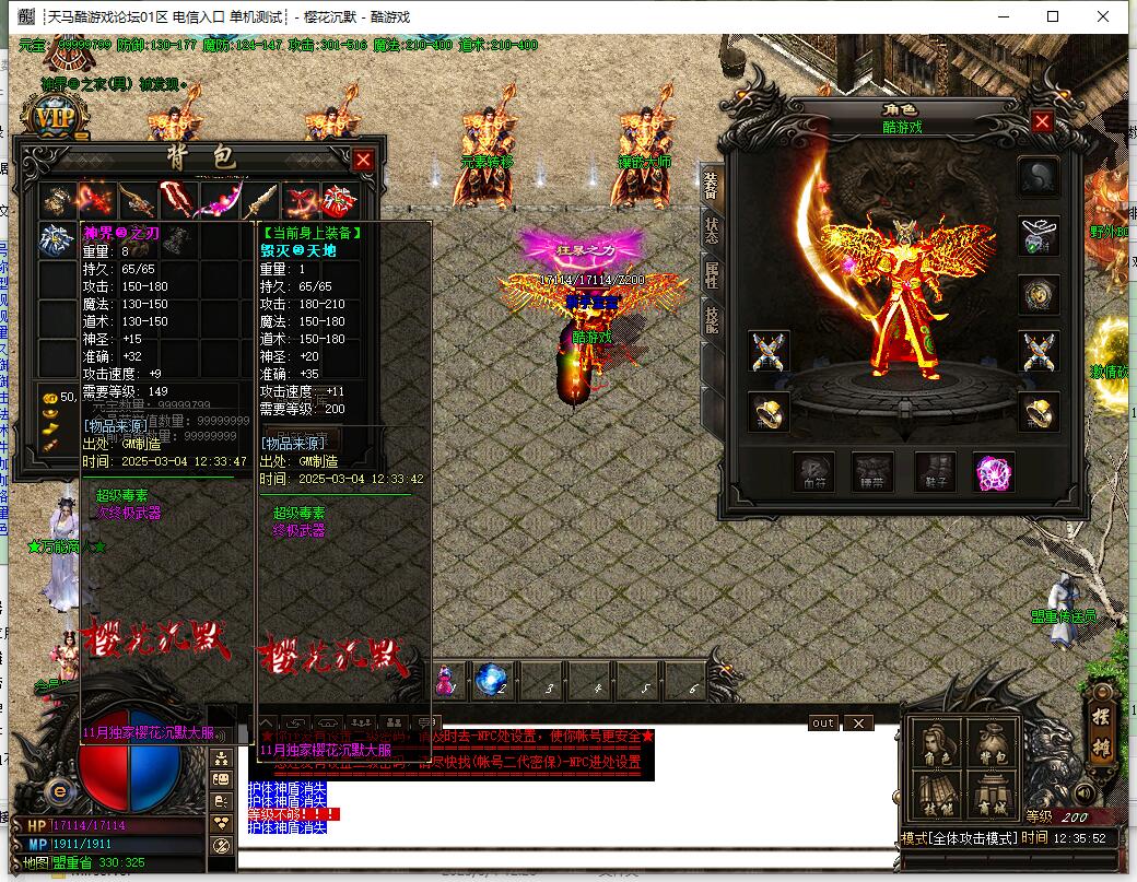 幸运15激发人物最佳攻击状态,人物变色!樱花沉默主要以打小极品为主,装备全部打无合成。