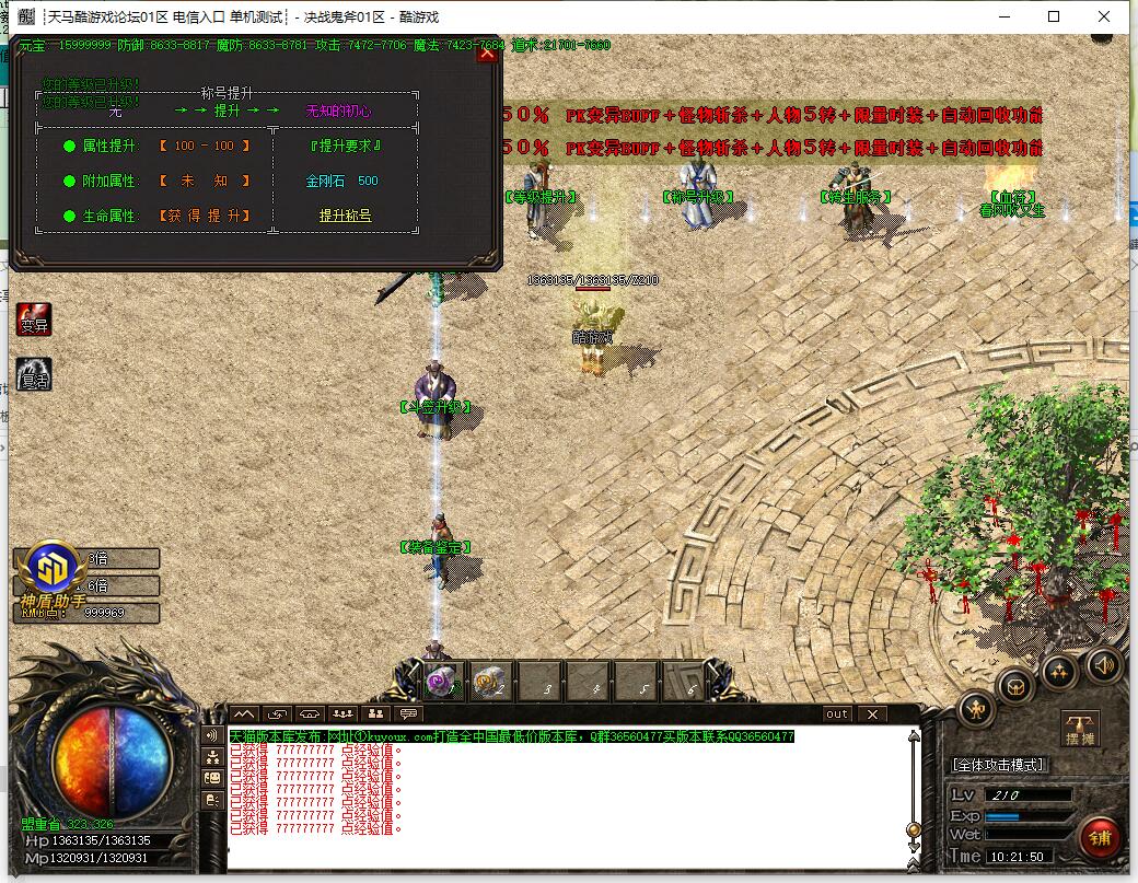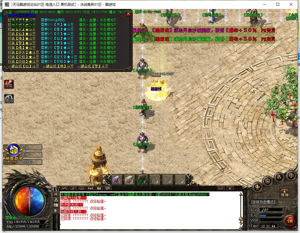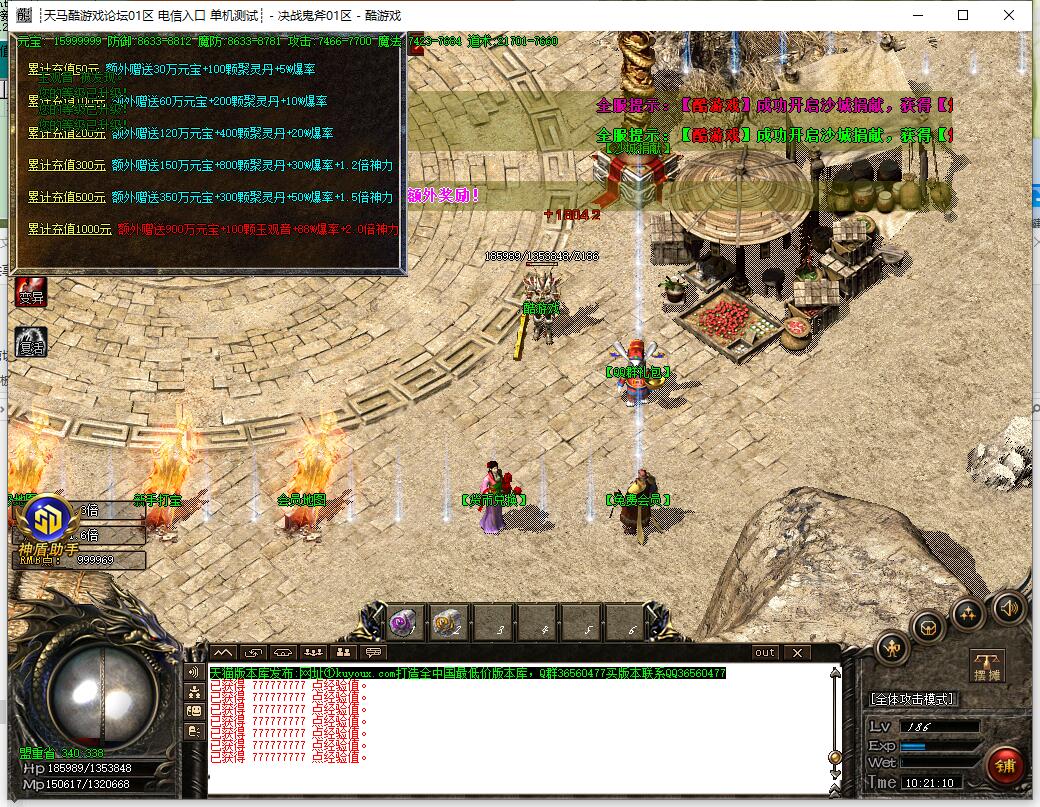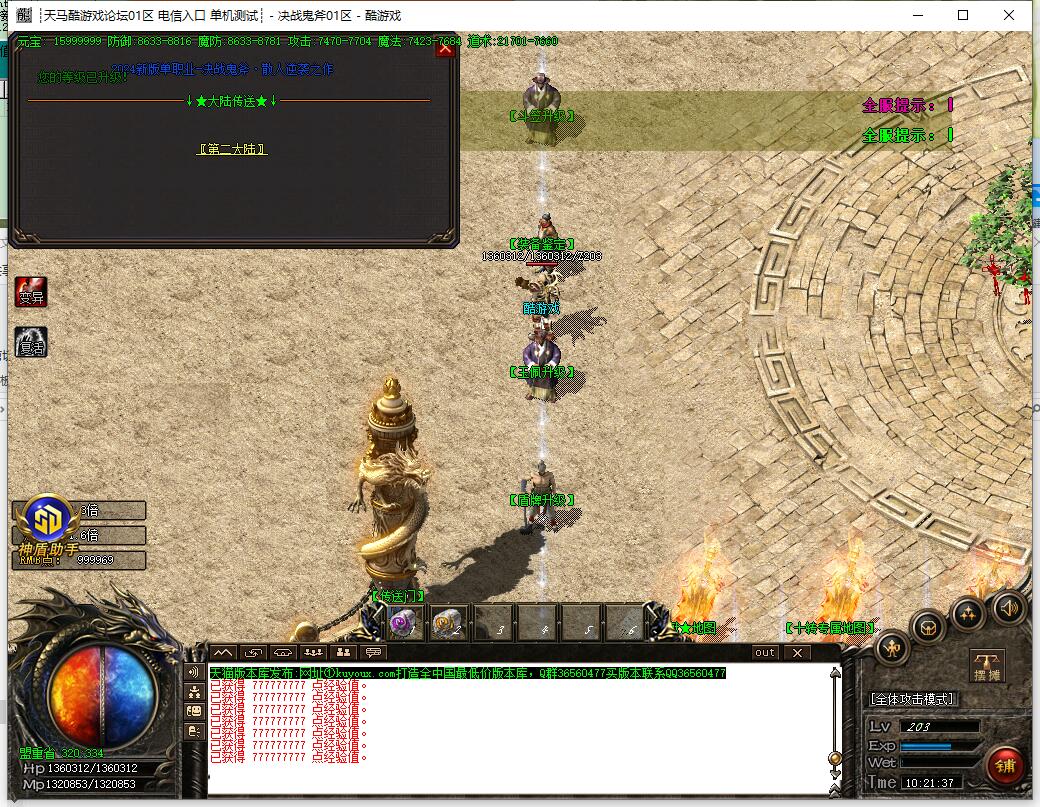 10. 前期主要打装备回收元宝,打经验丹升级。升级到1100级以后可以进入终极大陆!