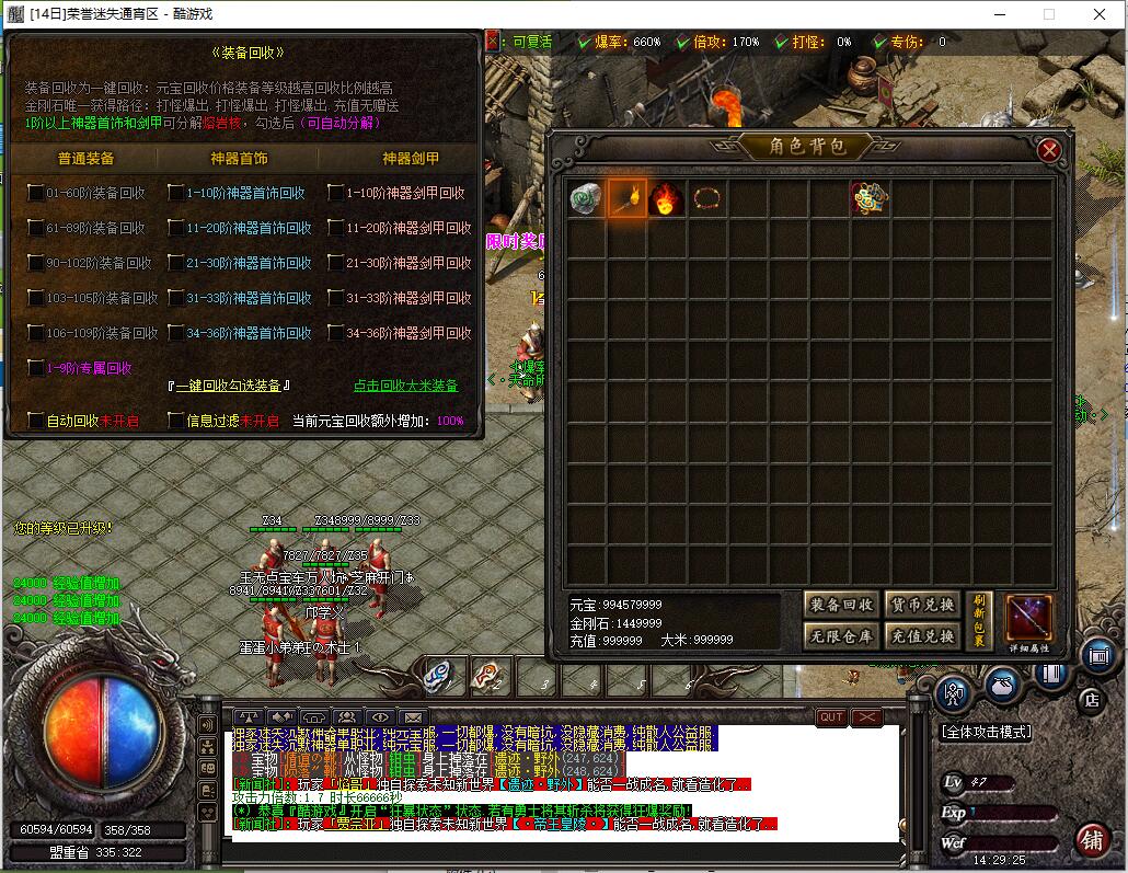 本服还原干净聊天框,无垃圾信息及回收提示,商铺不售材料全靠打怪,永久回收物品均由怪物爆出。游戏问题可QQ群联系客服完美解答,无论是否消费均用心服务,所有玩家公平对待。交易安全需通过商铺RMB点交易,提现手续费仅10%;私下交易一经查实封号并清除提现记录;禁止自动刷屏、骂人小号占安全区,违者警告或封号;严禁加速脱机外挂,发现必删永不解封。