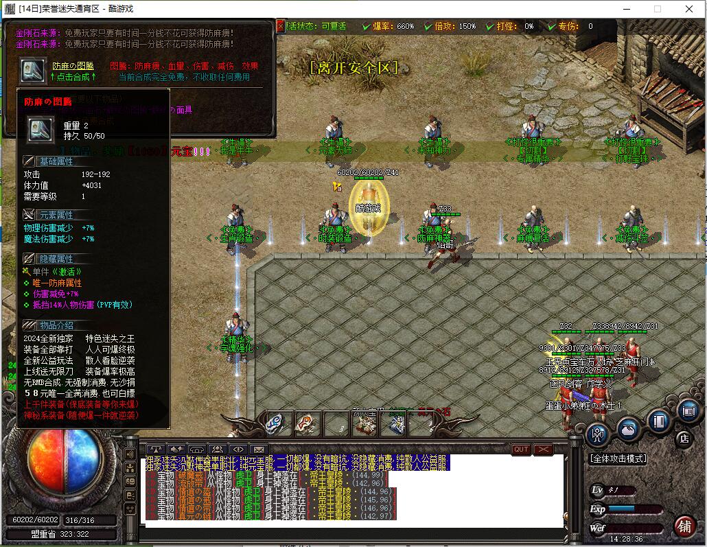 2024独家全新传奇版本,巨资推广专注人气聚集,充值比例1:1公平消费。每日五区滚动开放(10:30/13:30/16:30/19:30/22:30),新区火爆人气爆棚。全装备怪物爆率无保留,物品来源完全透明,公平爆装系统;重金定制GK反外挂系统,全面封禁外挂/加速/辅助,打造绿色公平环境。每日五区连开人气霸屏,次日合区第三天统一攻沙,激情PK体验。装备全靠野外爆出无商城售卖,投入时间可享爆装乐趣与收益;每日重金广告投放,主播平台+发布站全渠道推荐高人气保障。郑重声明:无充值比例/优惠不卖装备,公平无黑幕;防盗提示:不设二级密码保护账号安全谨防诈骗。