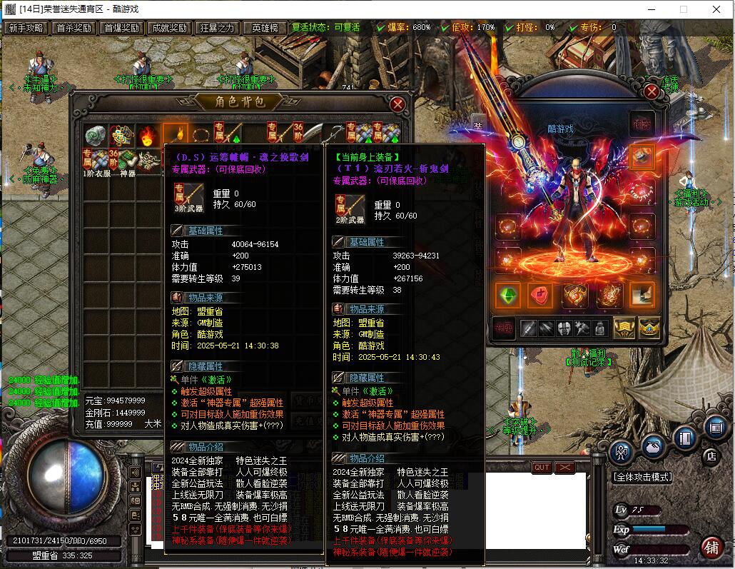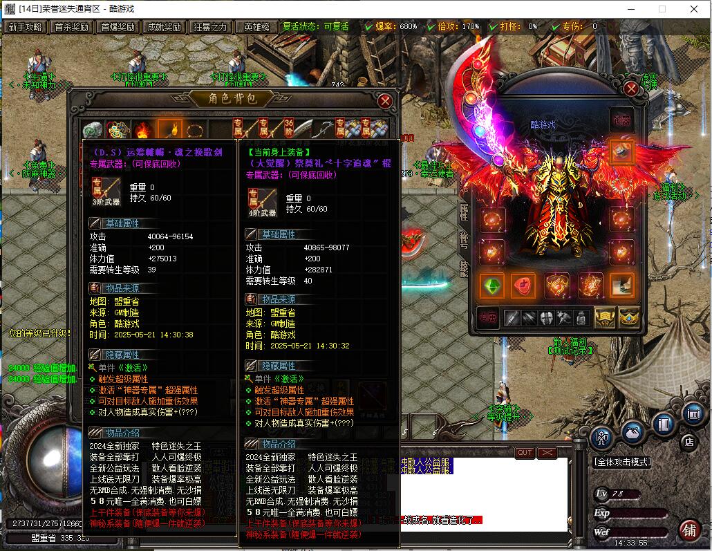 装备爆率极高,无RMB合成,无强制消费,无沙捐!上千件装备(保底装备等你来爆),神秘系装备(随便爆一件就逆袭)。
