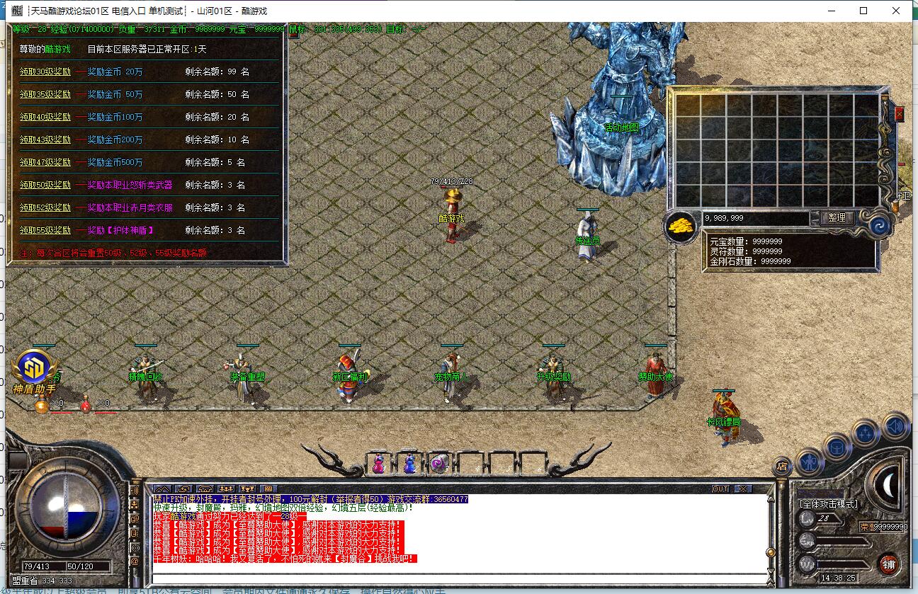 2. 道士35级召唤2只神兽,45级召唤2只强化神兽,48级召唤2只7级强化神兽,50级召唤终极神兽,十分强悍,可单挑一切BOSS!