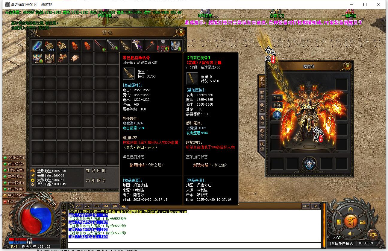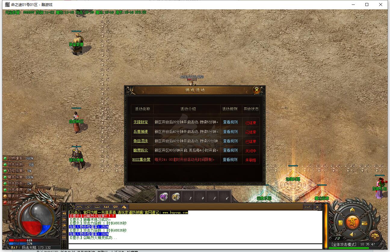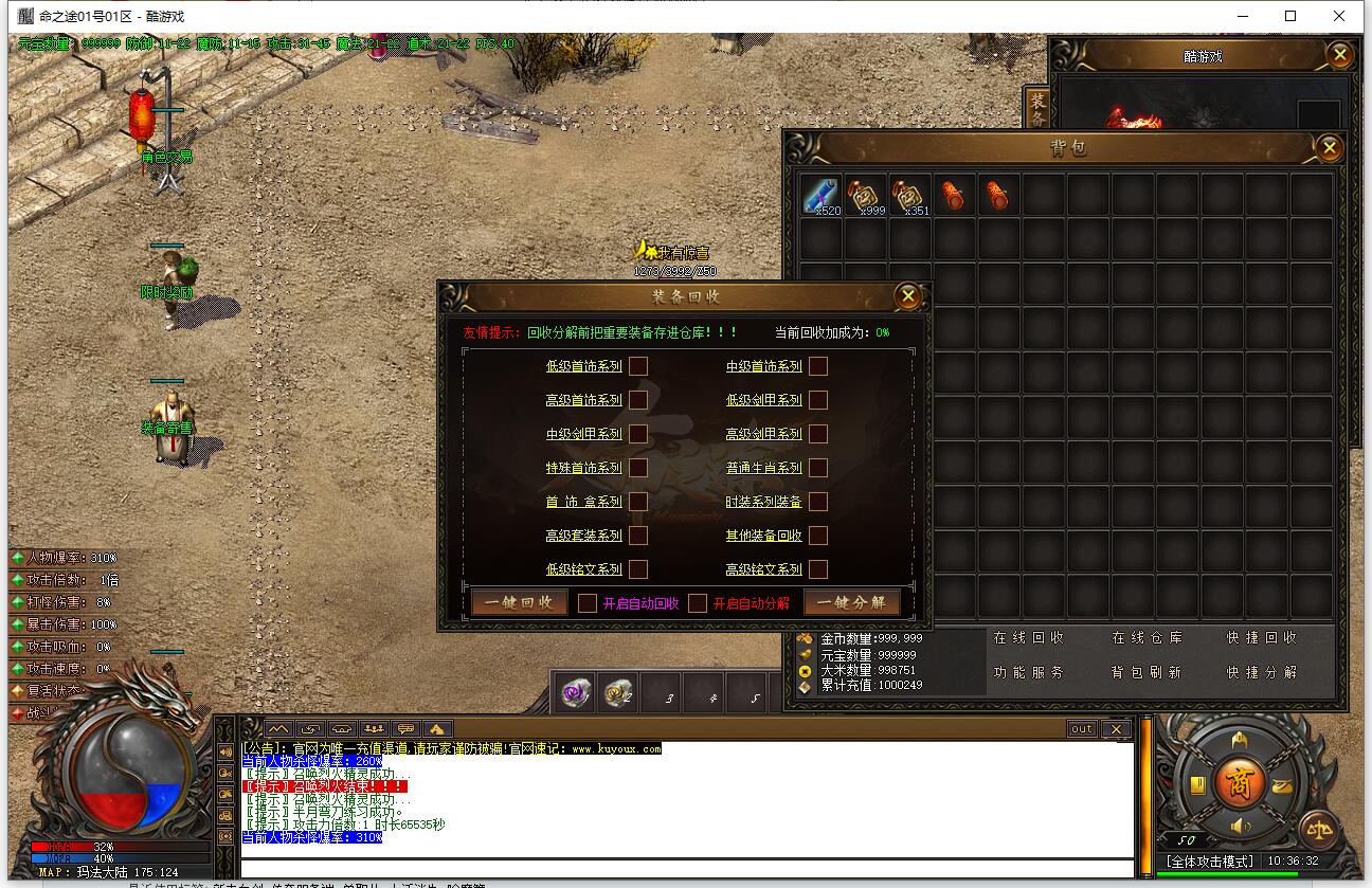 本服还原干净聊天框,无垃圾信息及回收提示,商铺不售材料全靠打怪,永久回收物品均由怪物爆出。游戏问题可QQ群联系客服完美解答,无论是否消费均用心服务,所有玩家公平对待。交易安全需通过商铺RMB点交易,提现手续费仅10%;私下交易一经查实封号并清除提现记录;禁止自动刷屏、骂人小号占安全区,违者警告或封号;严禁加速脱机外挂,发现必删永不解封。