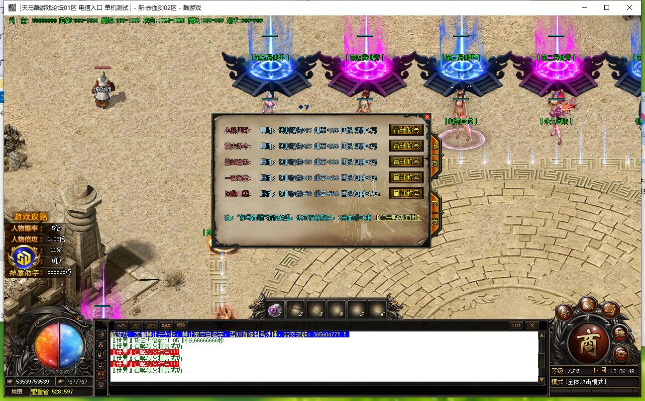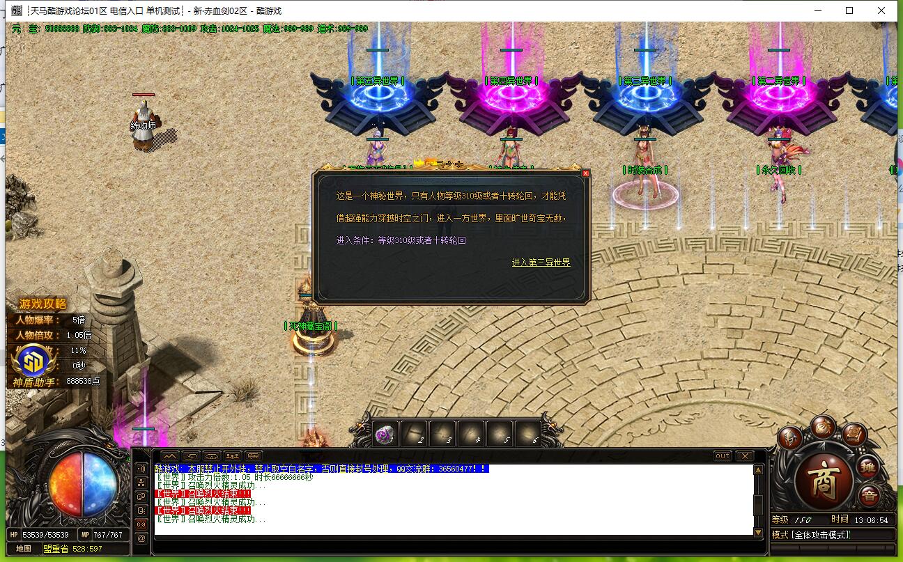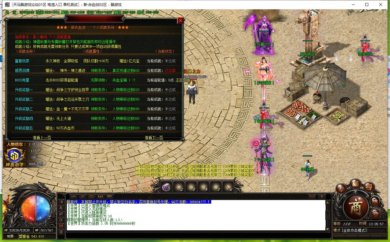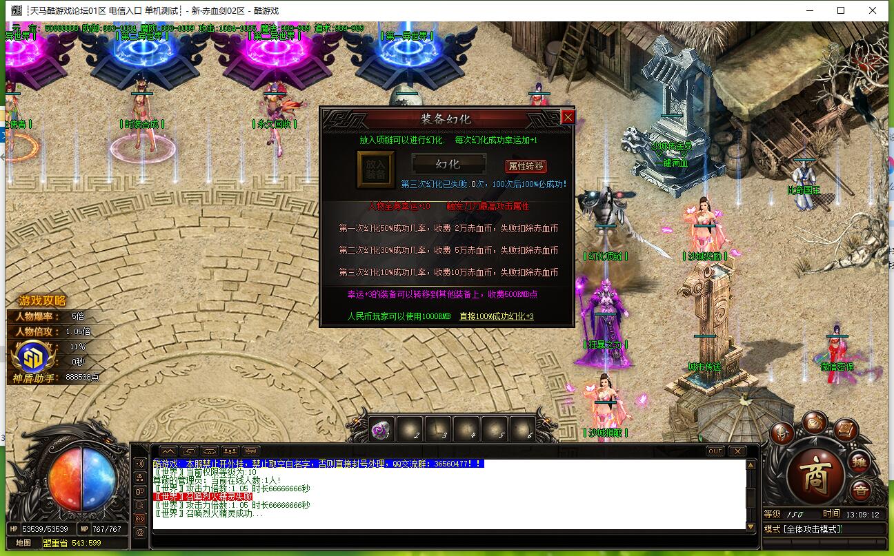 本服为散人通关版,充值1元=10RMB点,无任何比例。