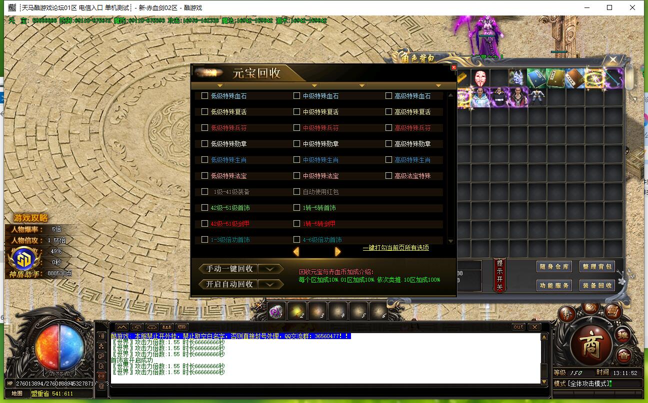 货币超级好打,适合散人玩家,装备永久回收RMB点。