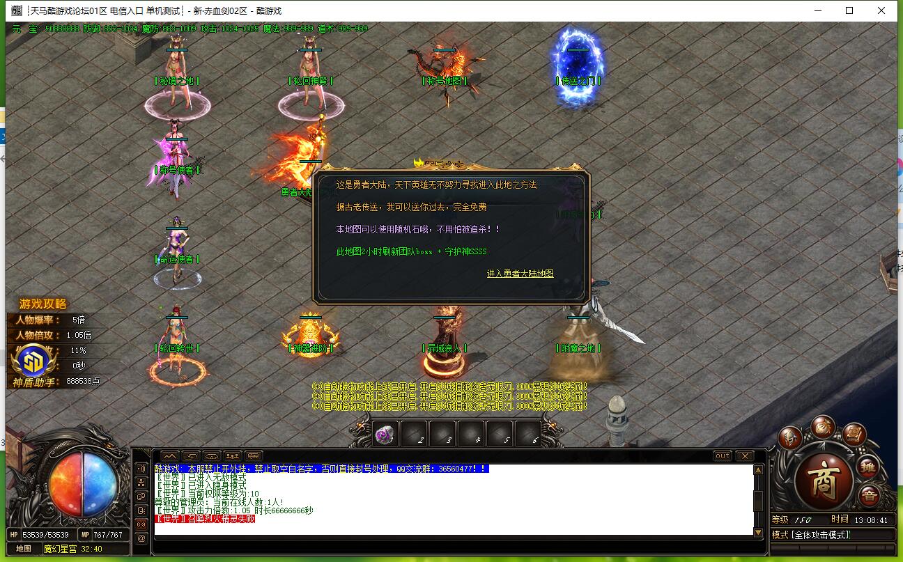 全民火龙单职业微变版本,纯散人服不花钱也可终极,一切靠打无合成,散人打金地图多怪物刷新速度快,装备货币保值,每日人品大爆发轻松300+收入。每天稳定四区开放(10:30 14:30 18:30 22:30),每个地图终极福利BOSS每晚22:01刷新,首区攻沙奖励RMB 588无封顶。市场最强封挂系统24小时接受举报,提醒设置二级密码防扫号。适度游戏益脑,拒绝盗版,享受健康生活。