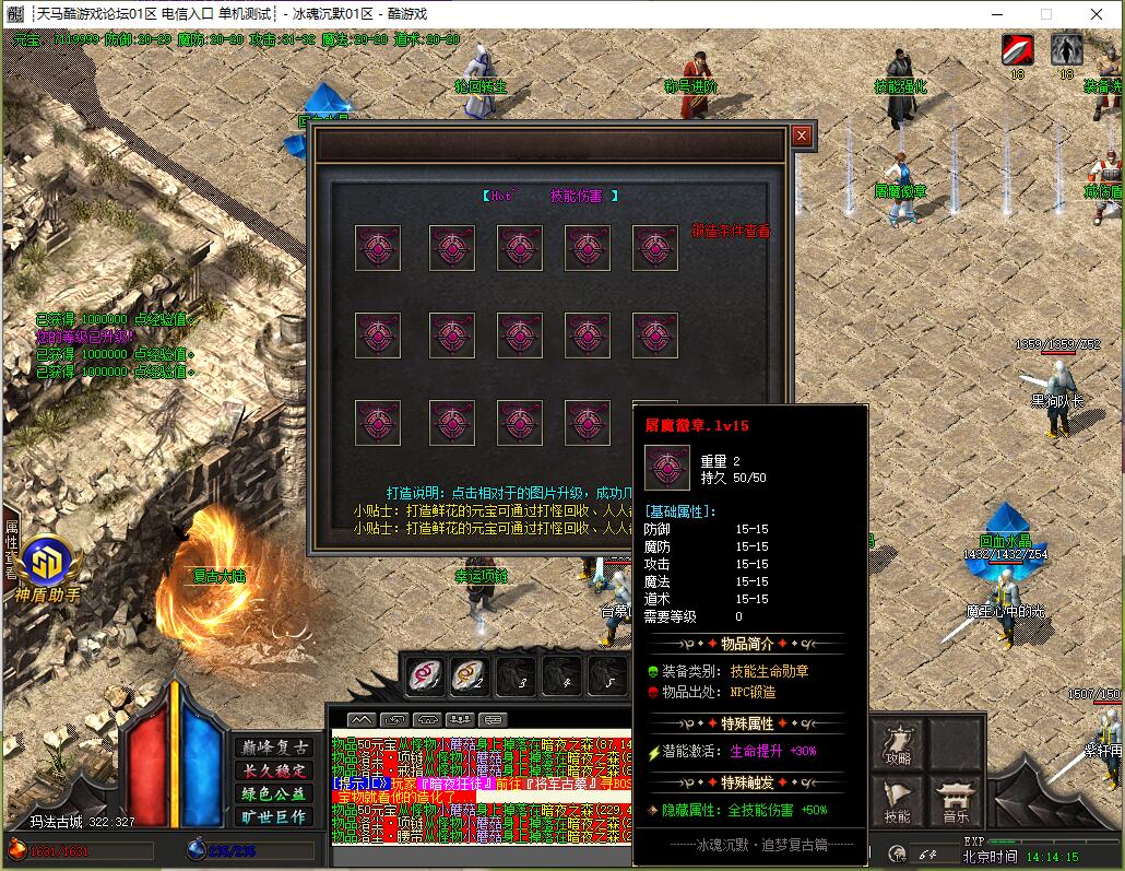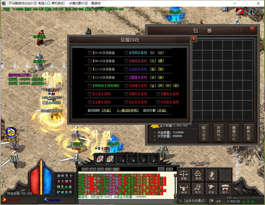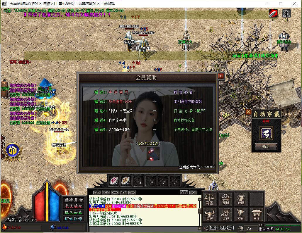本服还原干净聊天框,无垃圾信息及回收提示,商铺不售材料全靠打怪,永久回收物品均由怪物爆出。游戏问题可QQ群联系客服完美解答,无论是否消费均用心服务,所有玩家公平对待。交易安全需通过商铺RMB点交易,提现手续费仅10%;私下交易一经查实封号并清除提现记录;禁止自动刷屏、骂人小号占安全区,违者警告或封号;严禁加速脱机外挂,发现必删永不解封。