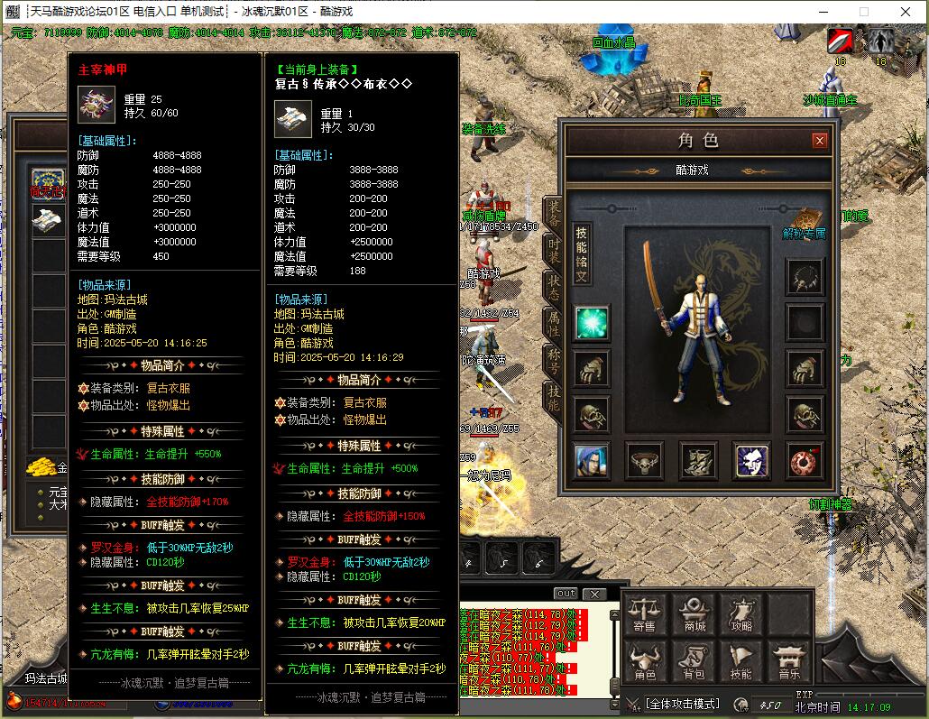 使用客户端连接服务器,创建角色并测试游戏功能是否正常