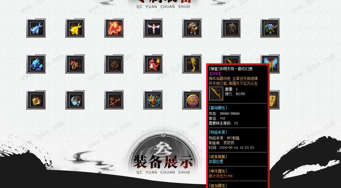 - 至尊赞助[300积分]: 属性介绍: 30%鞭尸几率, 20%最大攻击生命加成