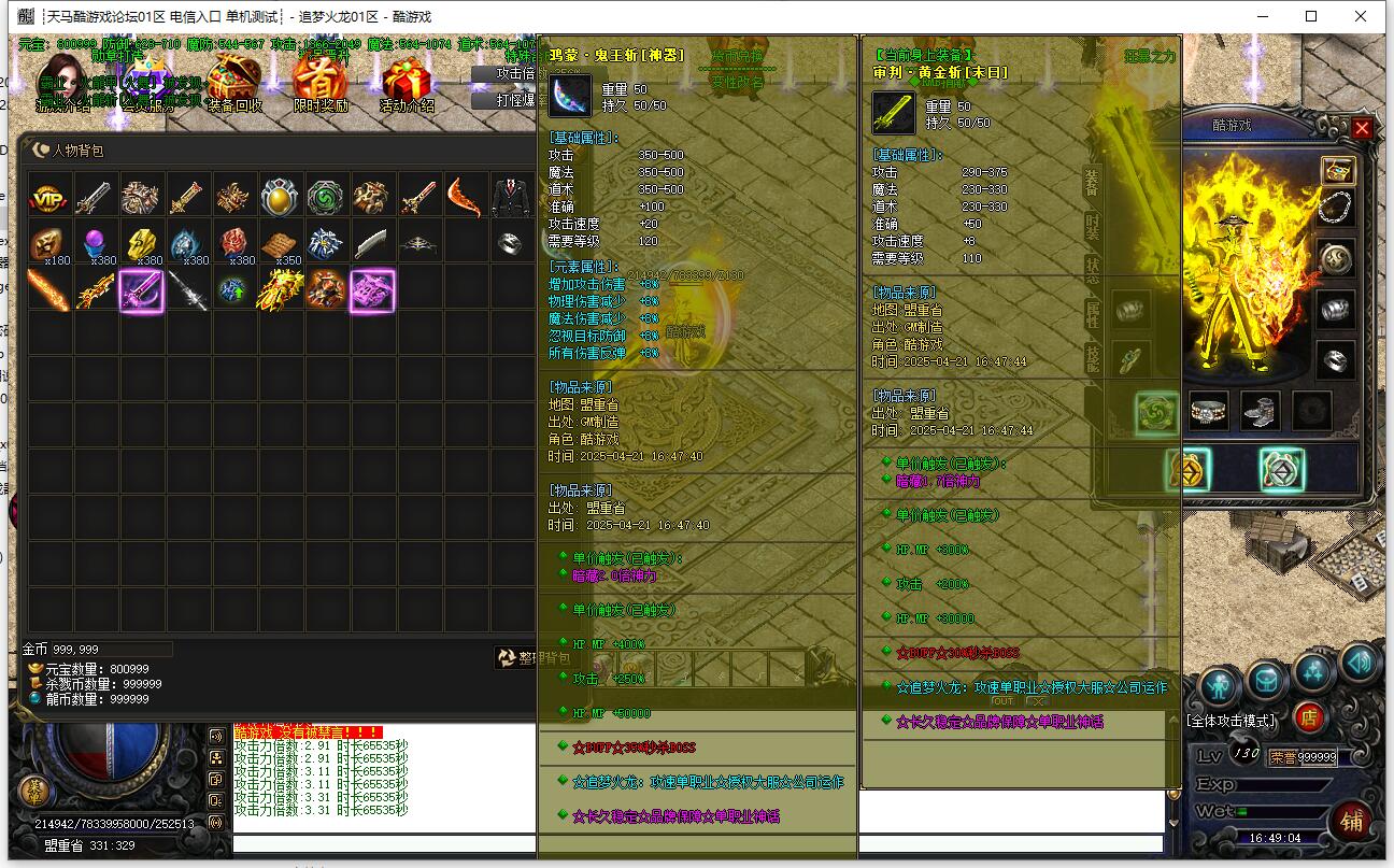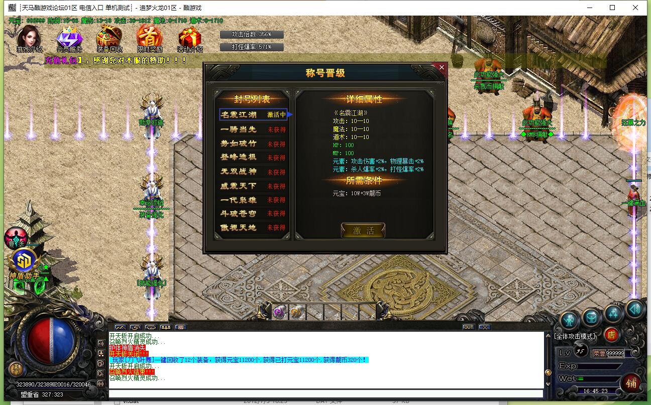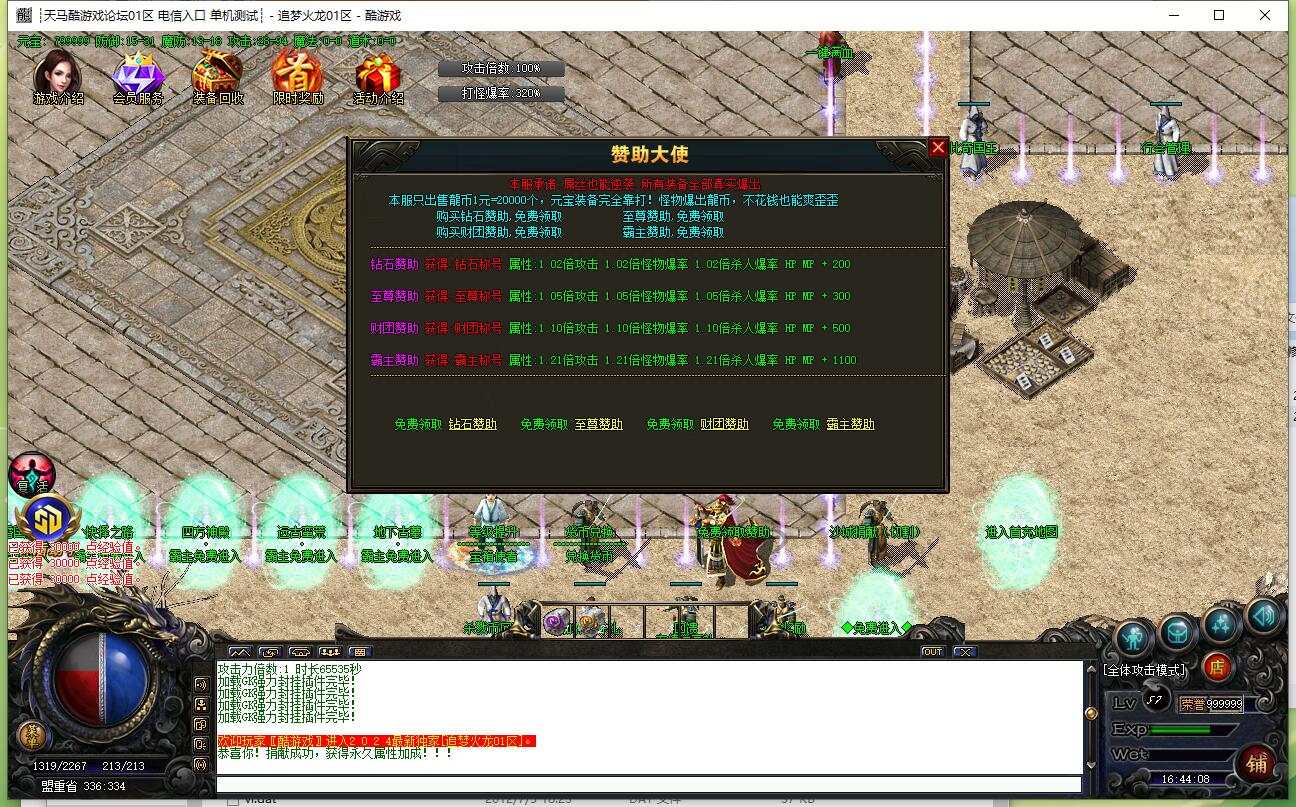 攻速三职业,传奇服务端,追梦火龙