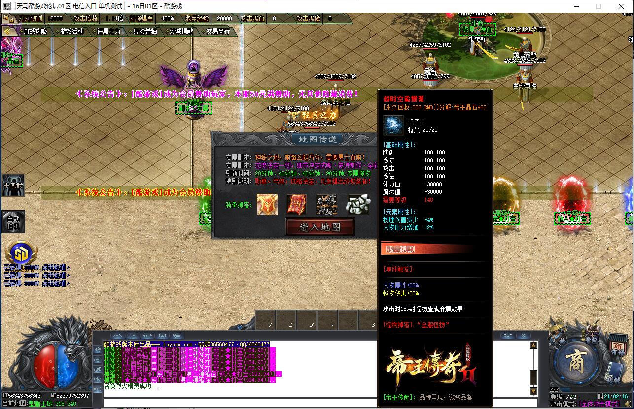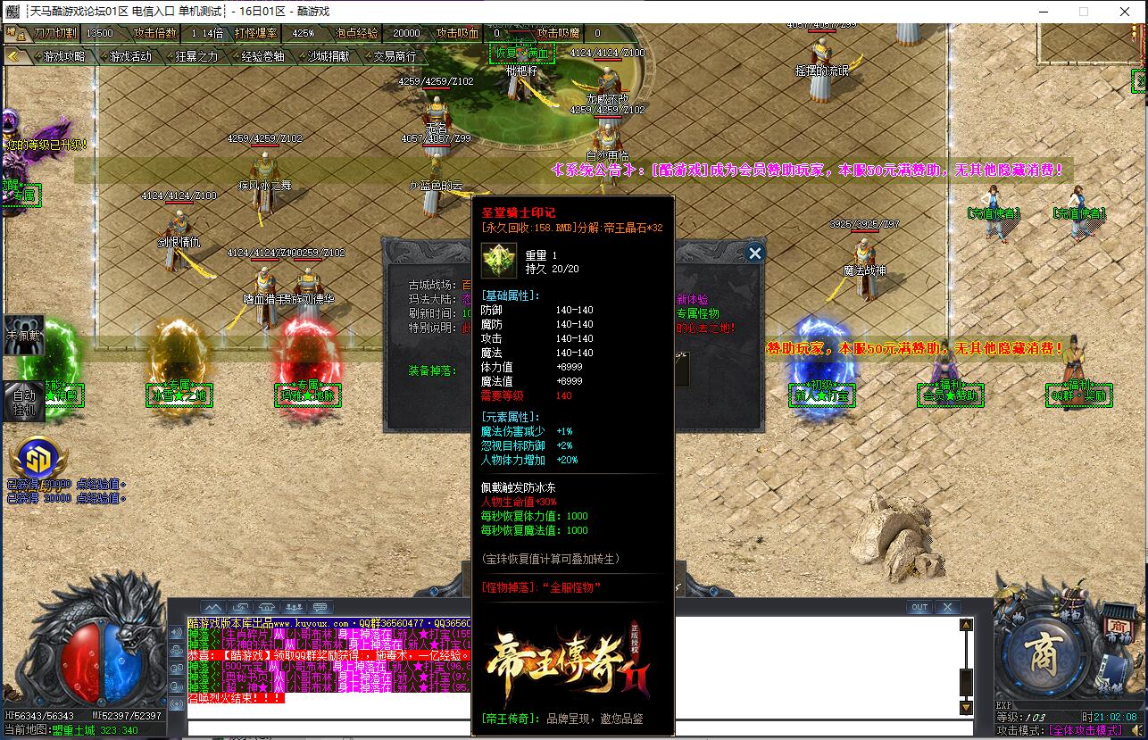 2024年龍帝苍月篇★复古独家单职业沥血巨制,每天7个新区开放(0点、10点、13点、15点、18点、20点、22点),1元=100000元宝+100荣誉+1000龍币+1充值点,无合成所有装备全靠打,装备材料全爆让时间更值钱,新服合区后攻城晚上统一拿沙奖励千元RMB,万元封挂网关严惩外挂,六年老品牌长期良心服,老板玩家都能激情玩!